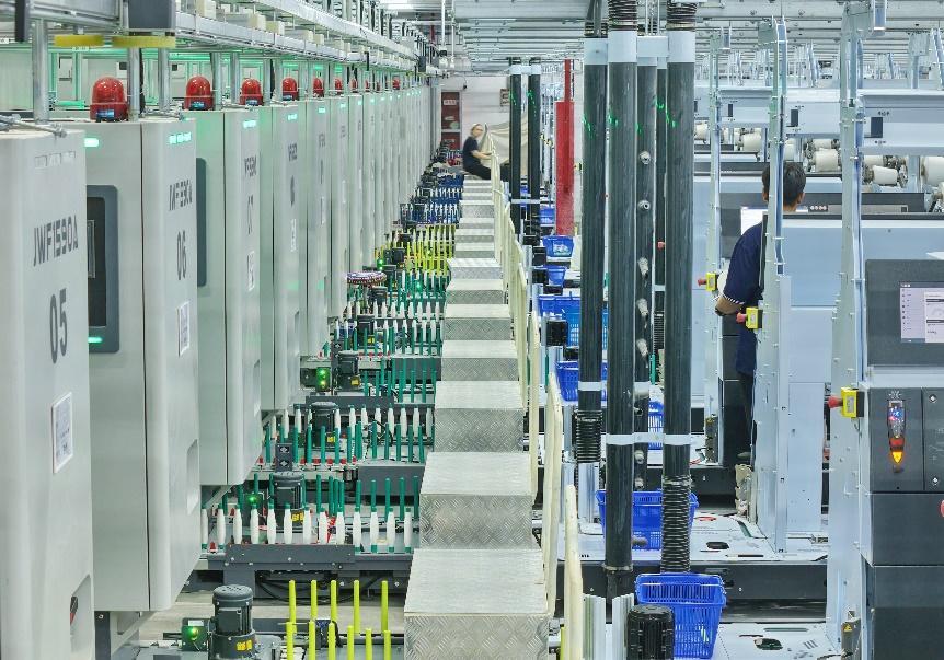 据介绍,此次投产的碳中和智慧纺纱工厂总投资1.87亿元,产能提升50%,年产零碳纱线可达6120吨。工厂以“低碳+智能”为核心,构建了包括高效能源消费体系、零碳能源供应体系和智慧能源管理体系在内的“三支柱碳中和解决方案”。在能源体系方面,工厂通过建筑节能改造与设备能效升级,万锭用工降至不足8人,生产效率提升30%以上,综合能耗降低20%以上;通过建设“风光储一体化+绿电交易+智慧微电网”系统,实现了近100%绿电稳定供应;ERP(企业资源计划)系统与MES(制造执行)系统无缝衔接,可实现碳的实时监控与计算,智能灯控系统打造“黑灯工厂”,智能物流系统实现AGV(自动导引)无人小车自动搬运。