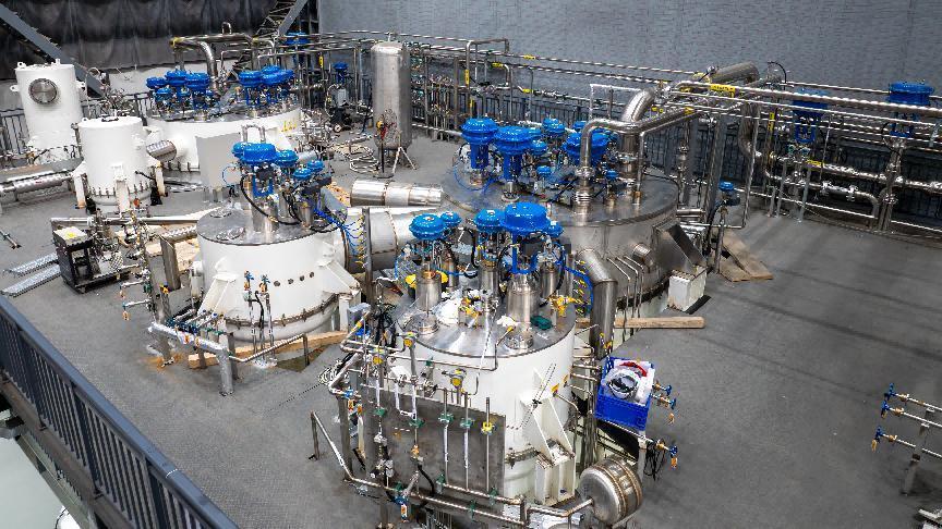 在氢液化装备基础上,中科清能于今年第二季度正式启动3kW@4.5K氦制冷机研制,仅用七个月就完成了全部设计、制造和调试工作并顺利投产。此次为CRAFT项目研制的3kW@4.5K氦制冷机,具备多用户端工况模式、快速变工况控制及高自动化水平等技术特性,能长期为CRAFT项目提供稳定的低温环境。