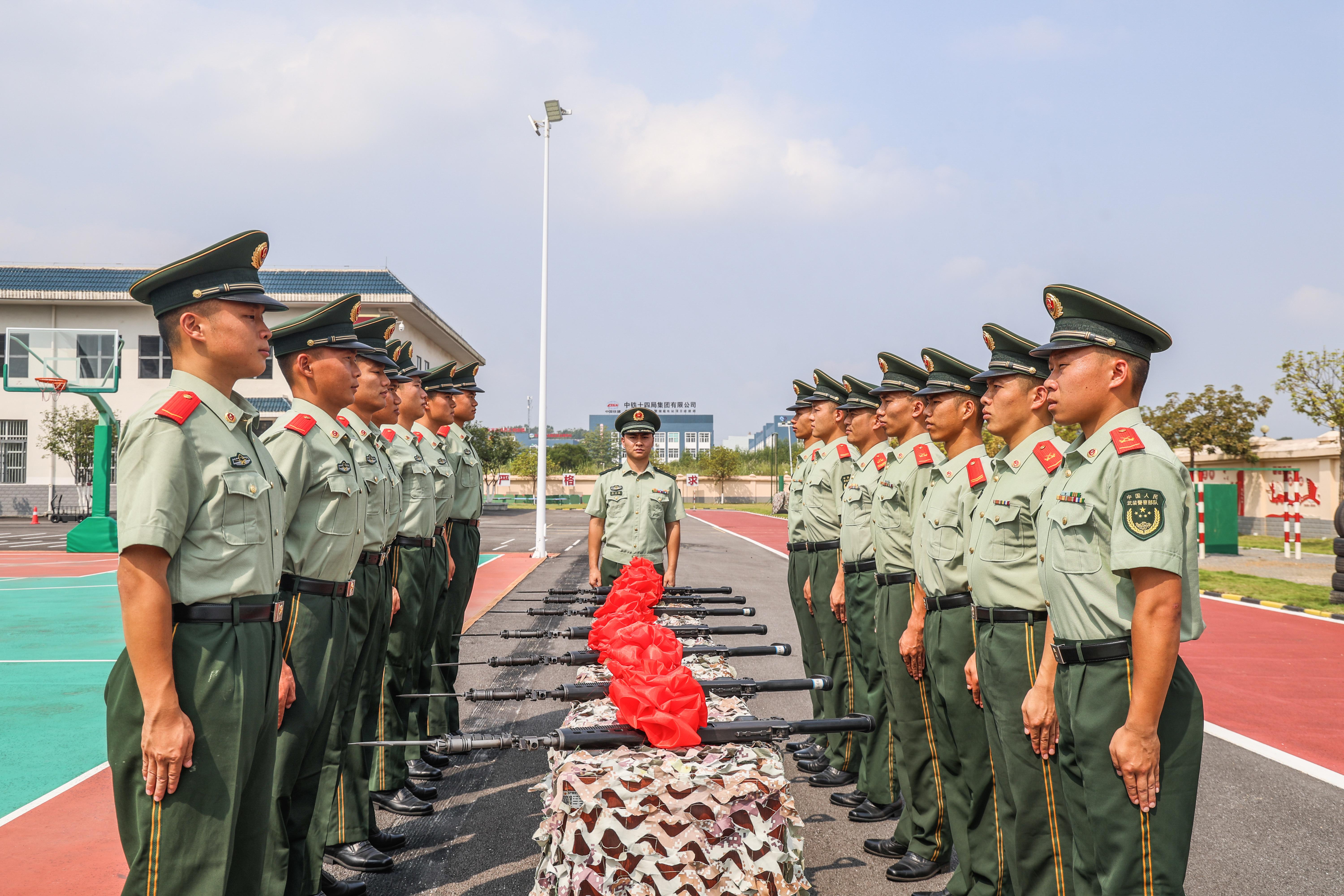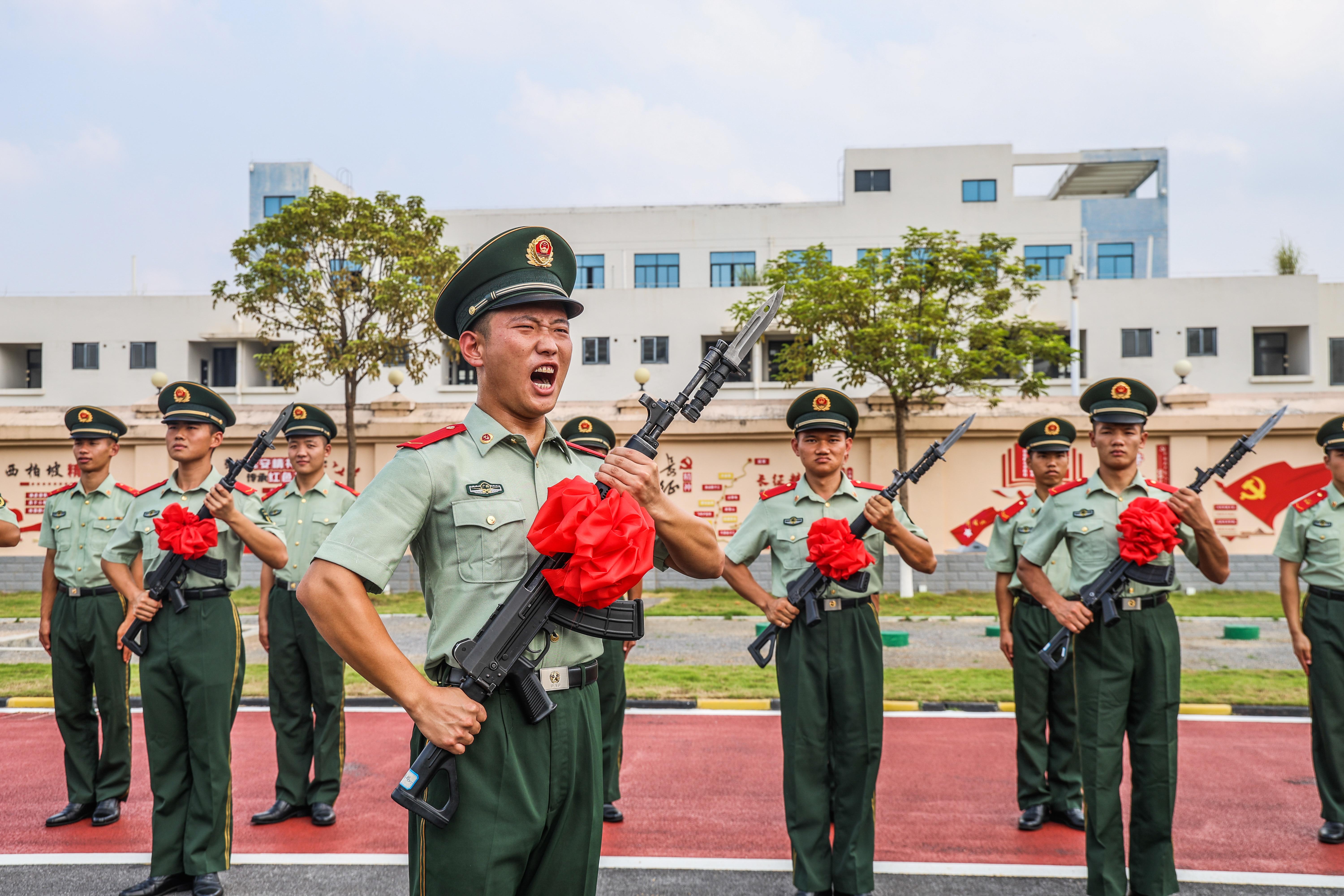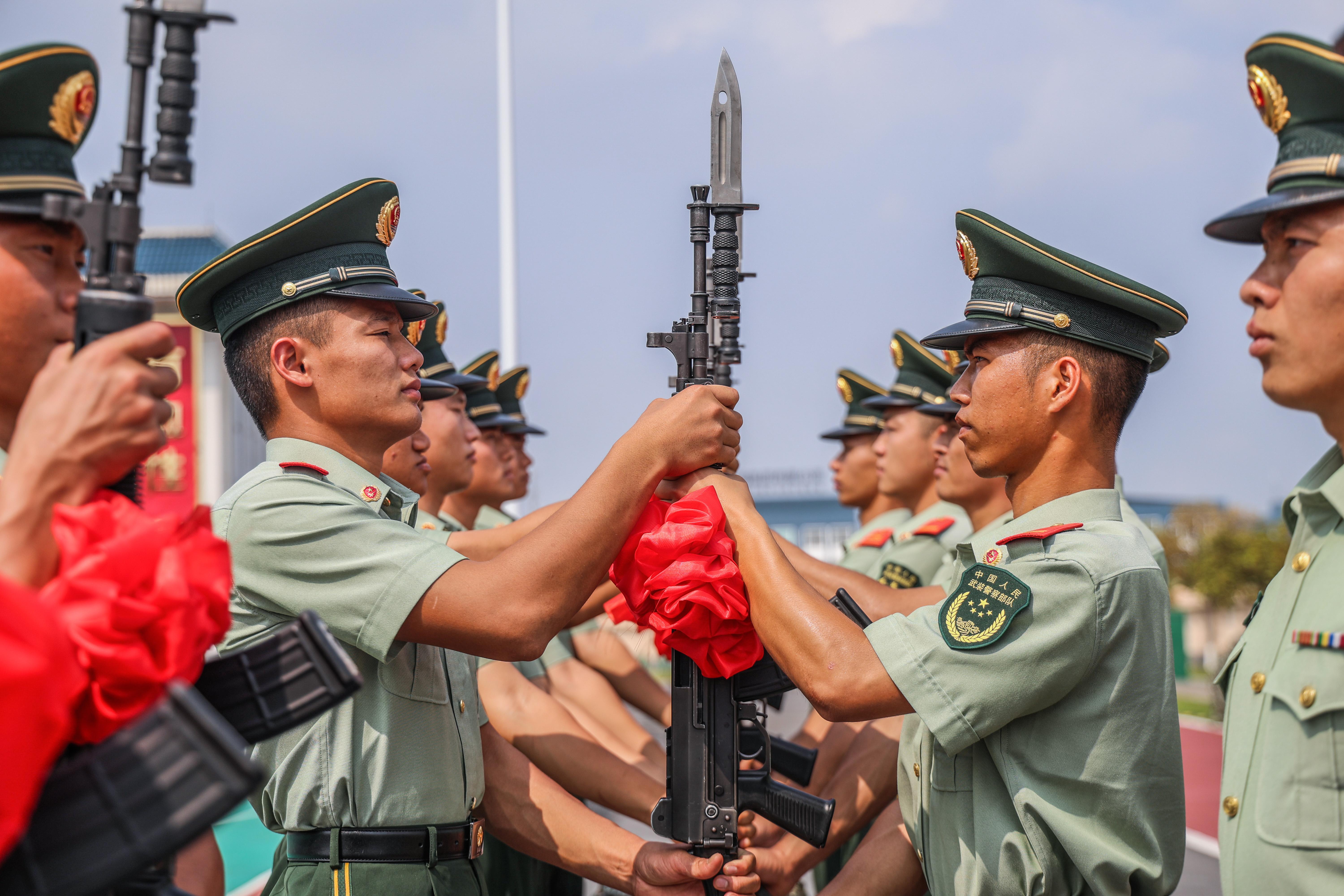 近日,武警广西总队来宾支队为新兵举行授枪仪式,以此激发新兵扎根军营、献身国防的责任感和使命感。