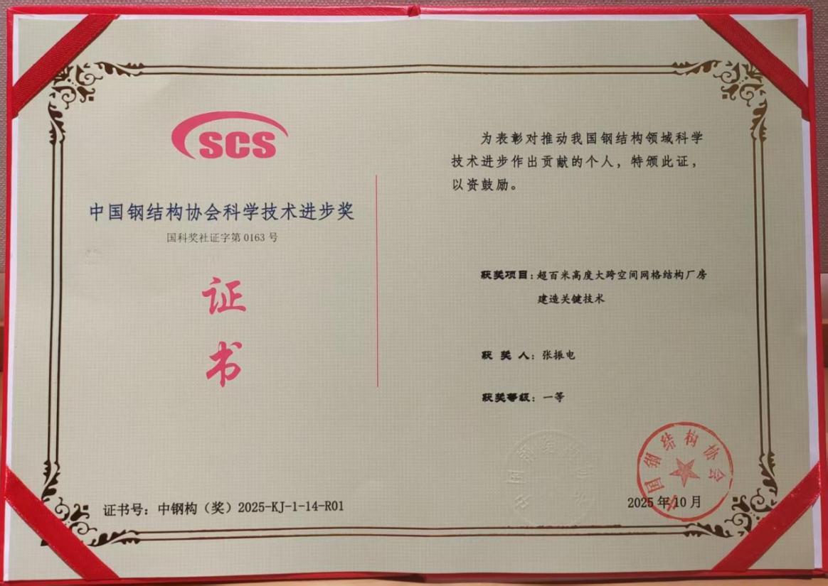 10月14日,2025年度中国钢结构科学技术奖颁出,“超百米高度大跨空间网格结构厂房建造关键技术”项目(以下简称超百米项目)凭借突出的创新力斩获中国钢结构协会科学技术进步奖一等奖。