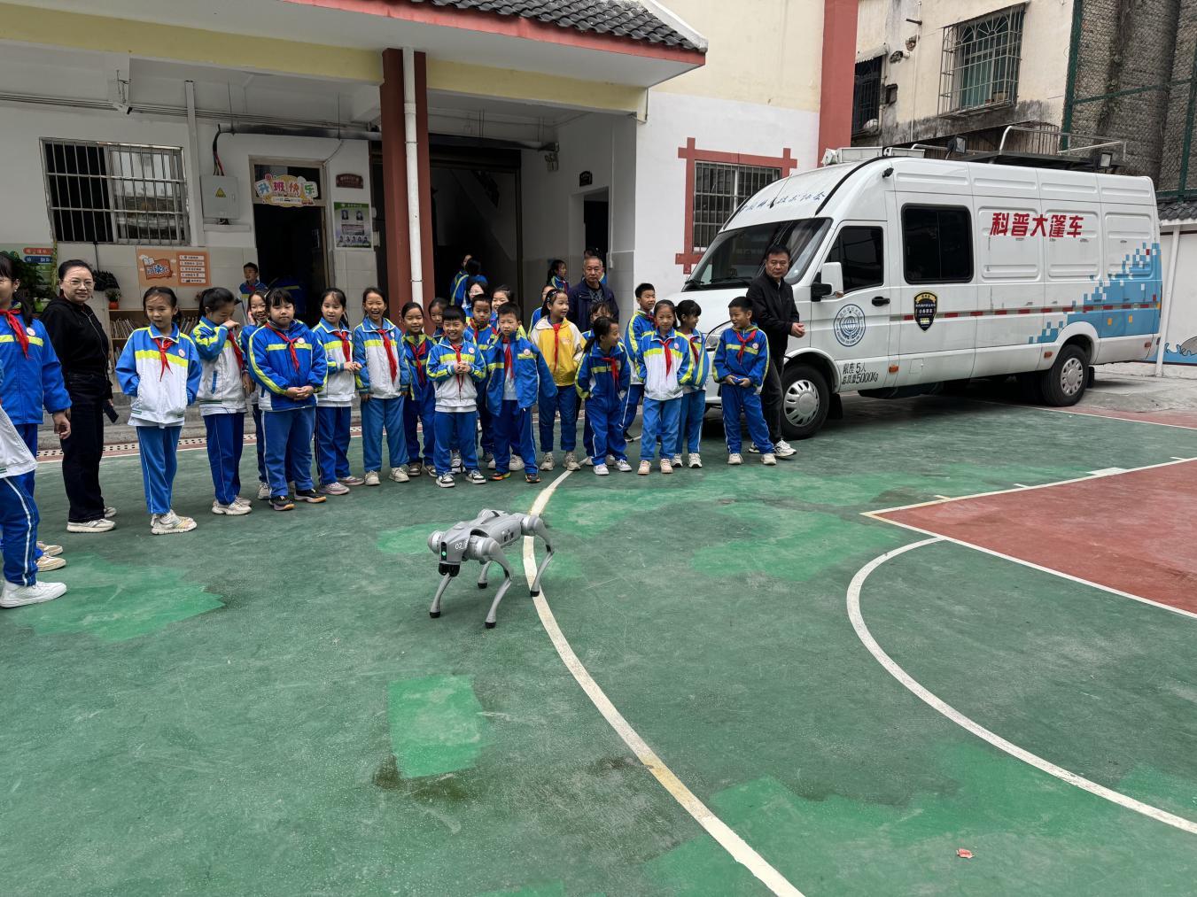同时,贵州科技馆、黔东南州科协、从江县科协配套科普大篷车,以“沉浸式互动”形式开展光学、力学、电磁学、人体与健康主题的科普展品展示。活动结合当地民族特色,创新融合多种科学教育模式,通过科学实验秀,机器狗表演、科技绘画等精彩纷呈的形式,充分发挥科普大篷车“精准服务、直达基层”的优势,为青少年带来沉浸式科学体验。