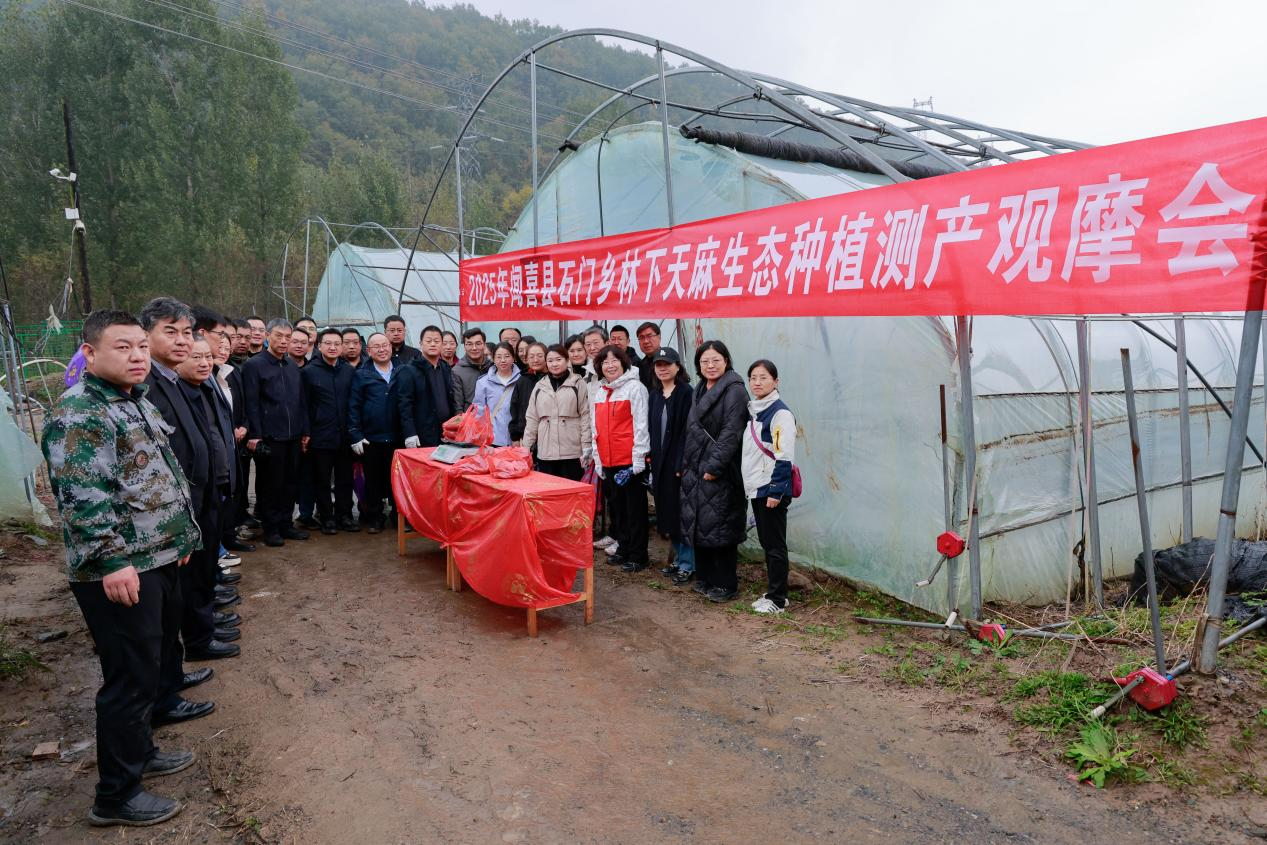 来自国家中药材产业技术体系、山西农业大学棉花研究所、运城市果业发展中心、运城市科学技术局、山西省中药材产业技术体系以及闻喜县农业农村局等单位的60余位专家参加测产观摩活动。专家组深入田间,随机选取3个设施大棚内的6个样方进行实测,共收获新鲜天麻51.62公斤,折合平均亩产达1912.5公斤,印证了该技术的可靠性与高产潜力。