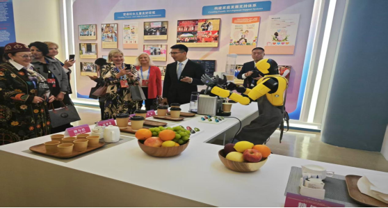 在近日举办的全球妇女峰会会场上,一款名为DexForce W1 Pro小维的人形机器人引起了现场嘉宾的注意。只见它在自主选取咖啡胶囊后,熟练地操作咖啡机,并等待咖啡机完成萃取,不一会儿,一杯热腾腾的咖啡便完成制作。