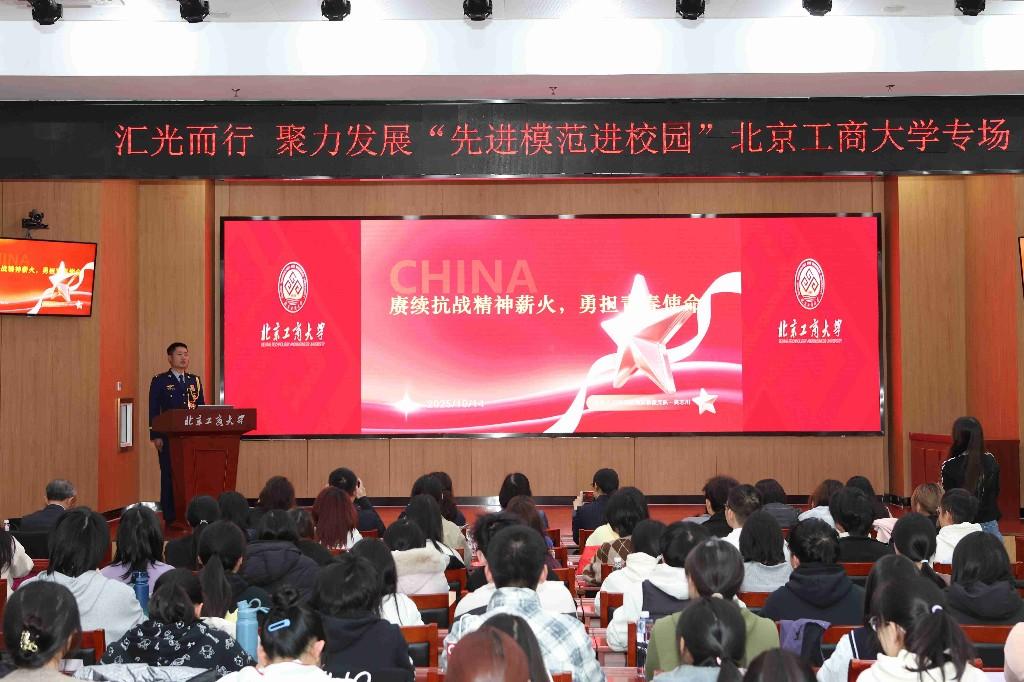 10月22日,北京市人力资源和社会保障局联合团市委、市退役军人事务局,在北京工商大学举办第三场“先进模范进校园”活动。全国模范退役军人黄志川、北京市优秀退役军人万佳与约170名师生面对面交流,结合科技实践与奋斗历程分享感悟,现场同步开展就业政策解读。