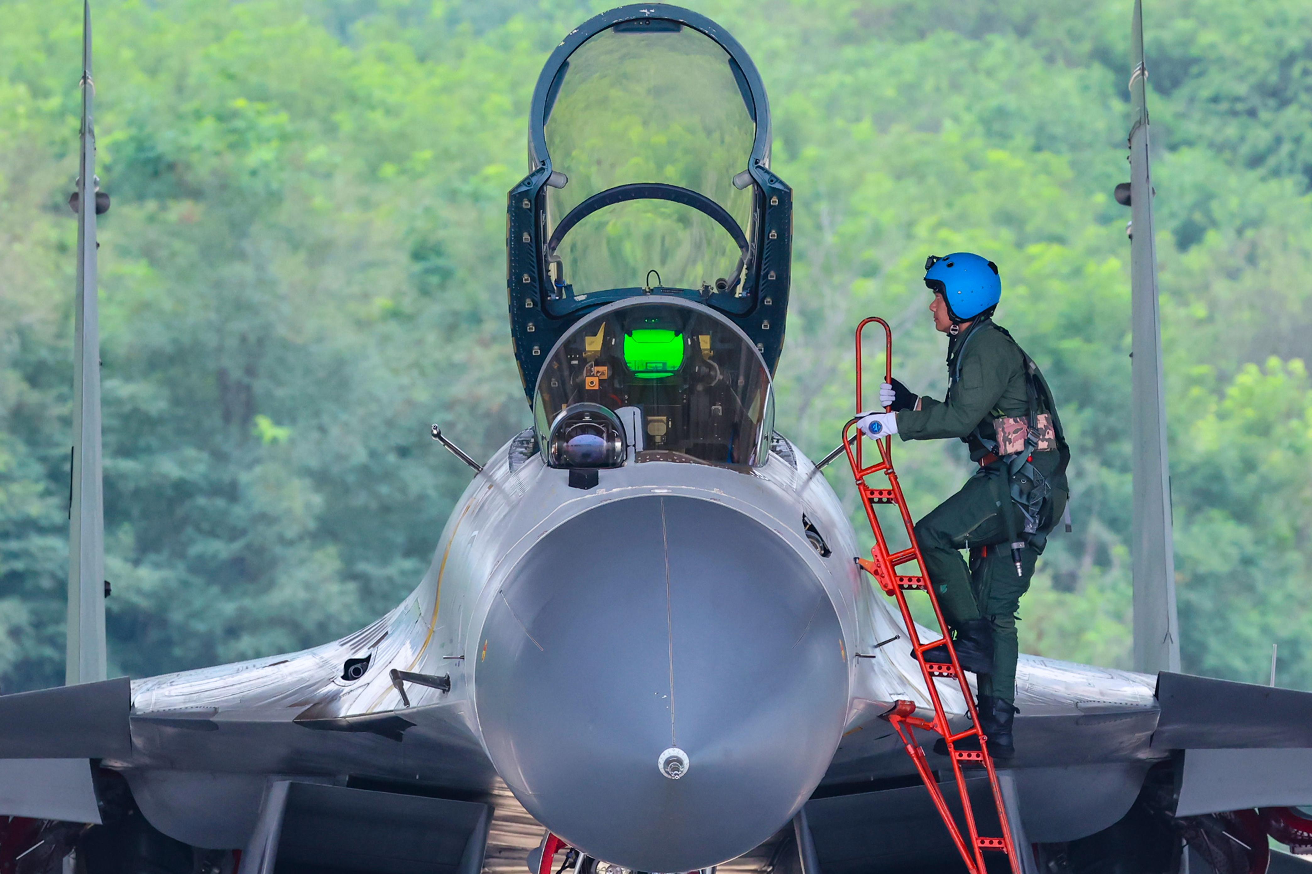 近日,海军航空大学某基地组织空战对抗、战术编队和陆基模拟着舰等多课目实战化飞行训练,提升飞行员胜战本领。