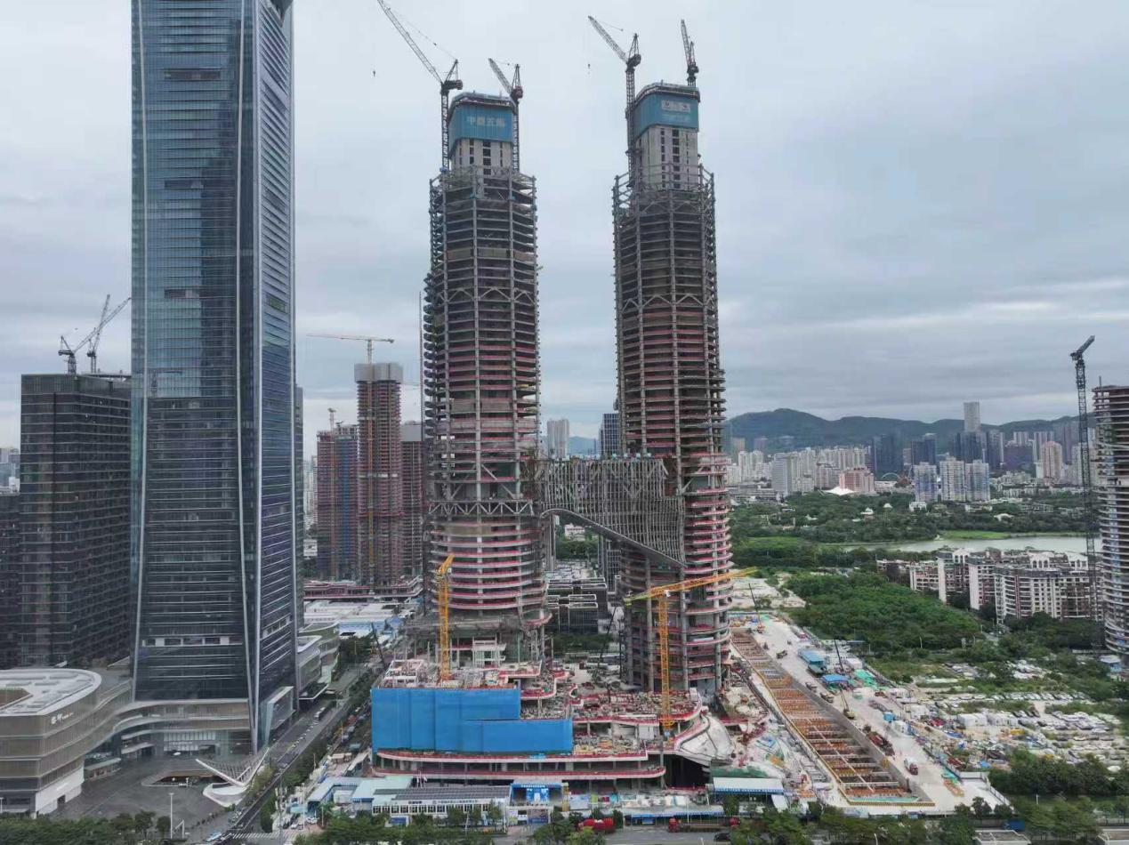据了解,深圳湾超级总部基地C塔项目由深湾发展投资建设,中建五局总承包,中建五局和中建钢构负责钢结构深化设计、制造和安装。项目位于深圳湾超级总部基地“十字双轴”空间格局中心区位,东塔高度400米、西塔高度336米,是全国连廊双子塔第一高楼,“深湾都市核心”三大超高层地标之一,建成后将成为片区TOD(公共交通导向型开发)地标。