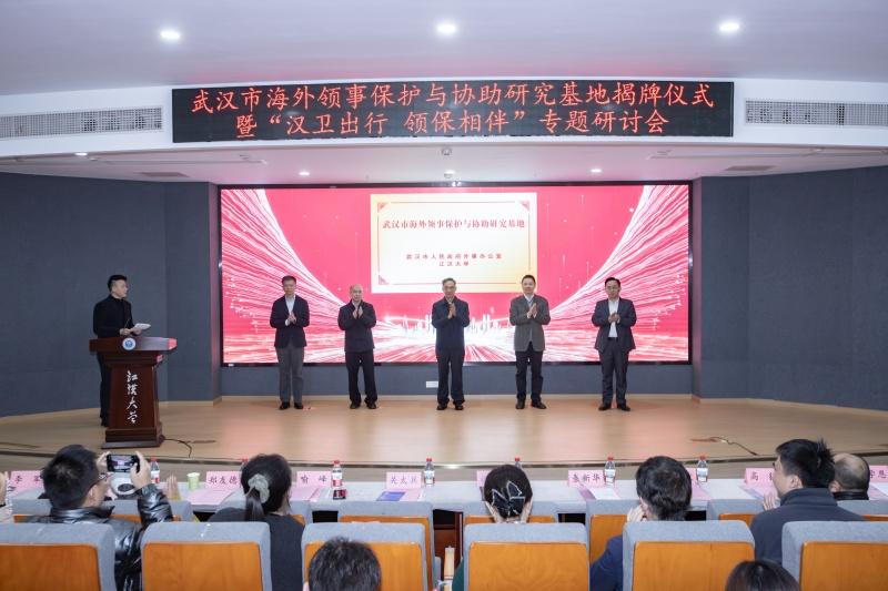 10月24日,由武汉市人民政府外事办公室与江汉大学共同主办的“武汉市海外领事保护与协助研究基地揭牌仪式暨‘汉卫出行 领保相伴’专题研讨会”在江汉大学举行。