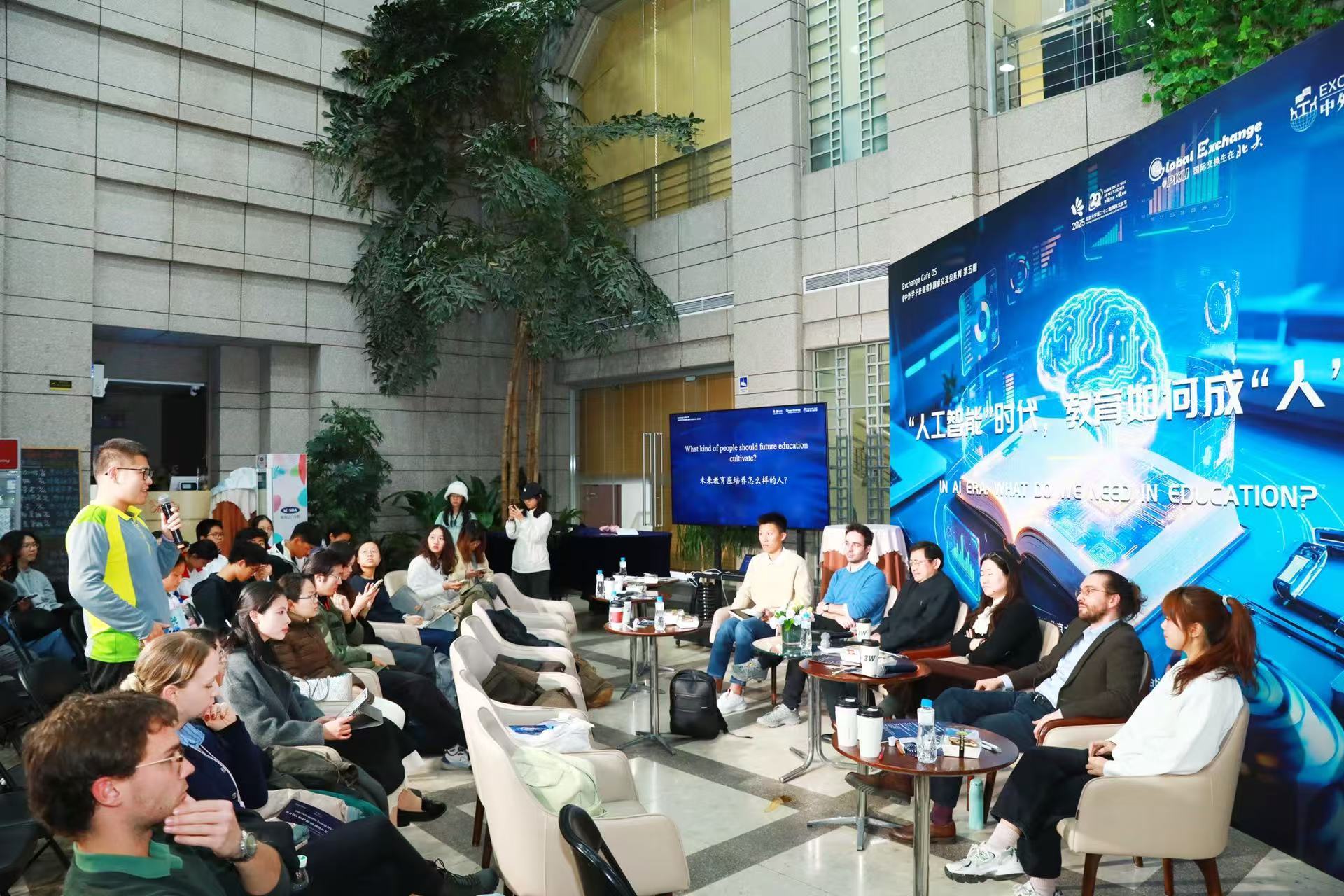 10月23日,《中外学子来做客》交流会第五期在北京大学百周年纪念讲堂四季庭院举办。本次交流会的主题是“‘人工智能’时代,教育如何成‘人’”。来自北京大学及国外多所高校的专家、学子,通过主题分享、案例分析、教师评述与圆桌对话,共议AI时代教育的本质与未来方向。