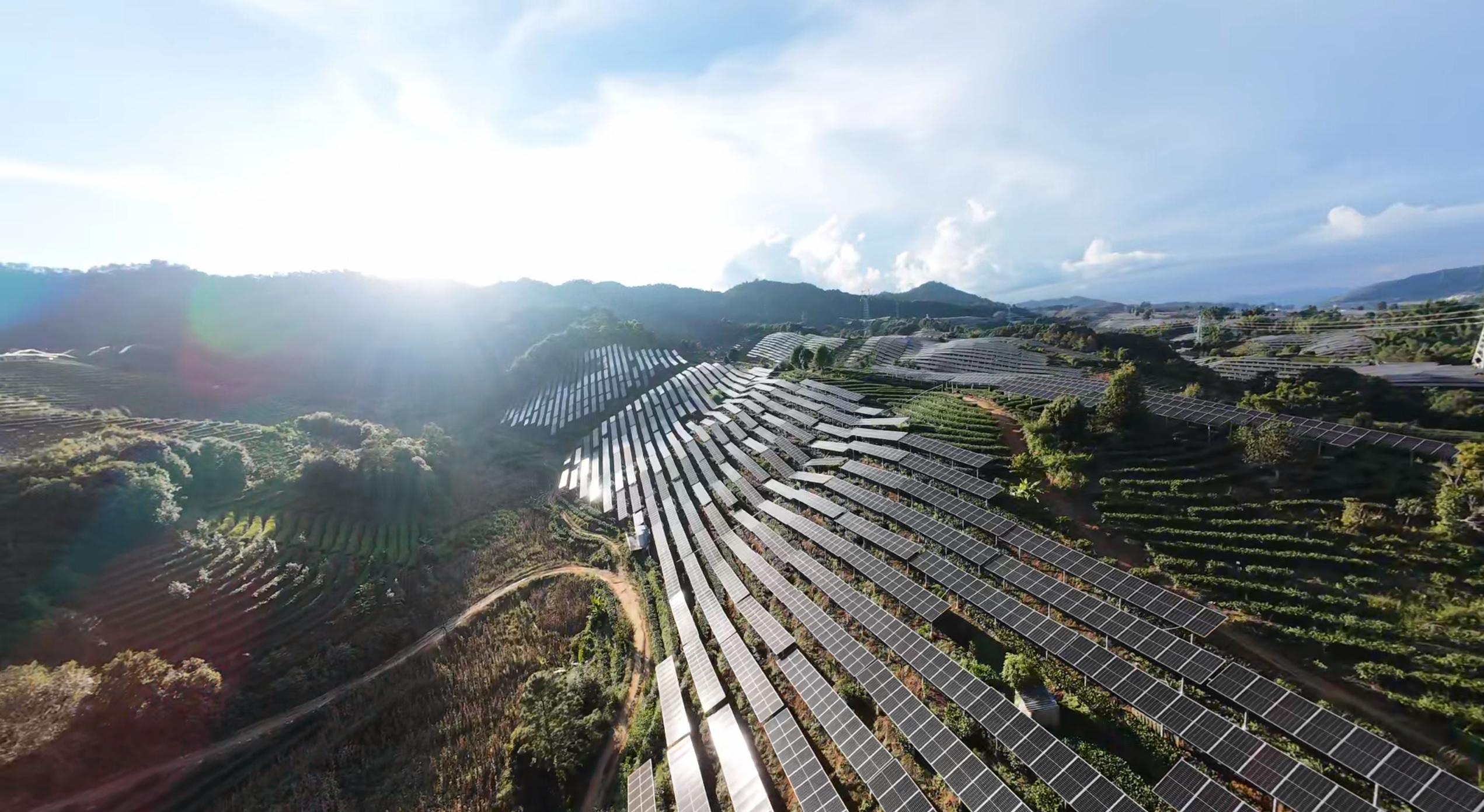 南屏西“茶光互补”光伏项目由中国能建所属中国电力工程顾问集团有限公司采用投建营一体化模式建设,是普洱市首批并网的“茶光互补”项目。项目位于思茅区南屏镇整碗村,装机容量60兆瓦,总投资3.6亿元。自2023年12月并网投产以来,年均发电量达1.1亿千瓦时,相当于每年节约标准煤约3.2万吨,减排二氧化碳超8万吨。