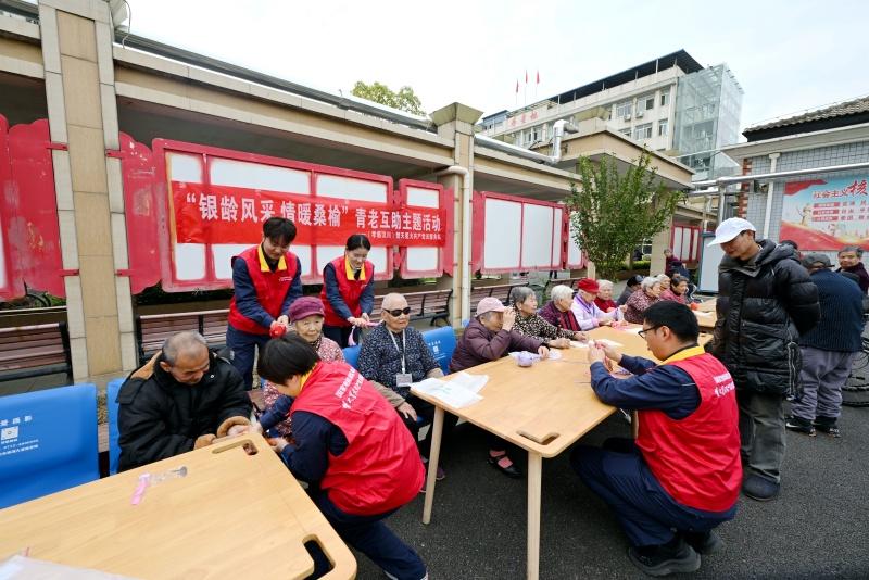 “夏秋换季,不少老年人风湿病复发了,服务队不仅送来膏药,还陪长者一起做艾草锤,长者们都盼着他们常来。”汉川市福利院护理部主任沈金花介绍。