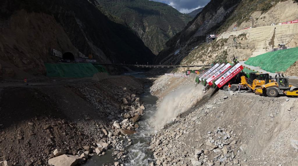 10月28日上午,在川西高原的雅砻江中游河段,随着最后一车石料倾泻而下,精准落入湍急的龙口,总装机270万千瓦的两座大型水电站——孟底沟水电站、牙根一级水电站实现同步大江截流,标志着雅砻江流域水风光一体化基地将再建两座主力电源,项目建设迈入主体工程施工新阶段。
