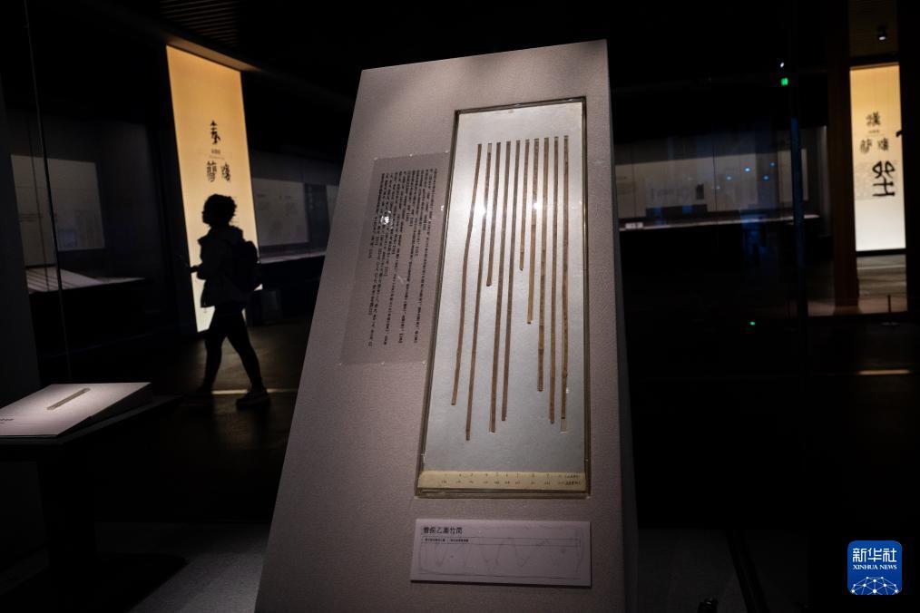 1978年在湖北出土的曾侯乙编钟早已蜚声世界,而曾侯乙墓出土竹简则鲜为人知。本次展览罕见地展出距今约2400年的曾侯乙墓竹简,成为一大亮点。“曾侯乙墓竹简是迄今发现的时代最早的竹简,时代在战国早期。”湖北省博物馆学术研究中心副主任罗恰介绍,这批竹简均出自墓葬北室,与兵器、皮甲等放在一起,内容为遣策,主要是关于丧葬时所用车马的记载。