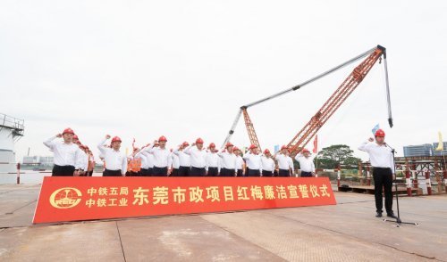 “我在此郑重宣誓:清风红梅映初心,实干兴企吾当先……”10月26日,广东东莞洪梅大桥整体拆除重建工程项目现场,铿锵有力的宣誓声“穿透”工地围挡,中铁五局与中铁工业联合举办的“让清风充盈建筑工程——廉洁共建暨廉洁文化进项目”活动在此拉开帷幕。