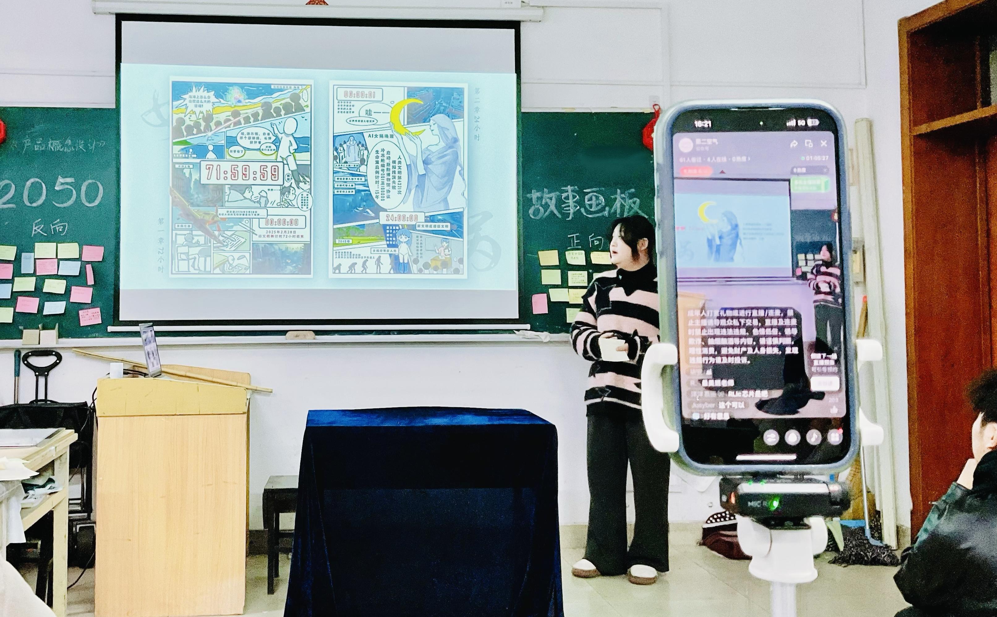 这门“宝藏课程”好在哪儿?青岛理工大学艺术与设计学院院长朱宏轩介绍,课程以“从故事中来,到故事中去——关于2050年的设计”为主题,突破传统设计教学的路径依赖,引领学生用未来的视角沉浸式思考设计课题,最终达成价值引领与专业发展的深度融合。