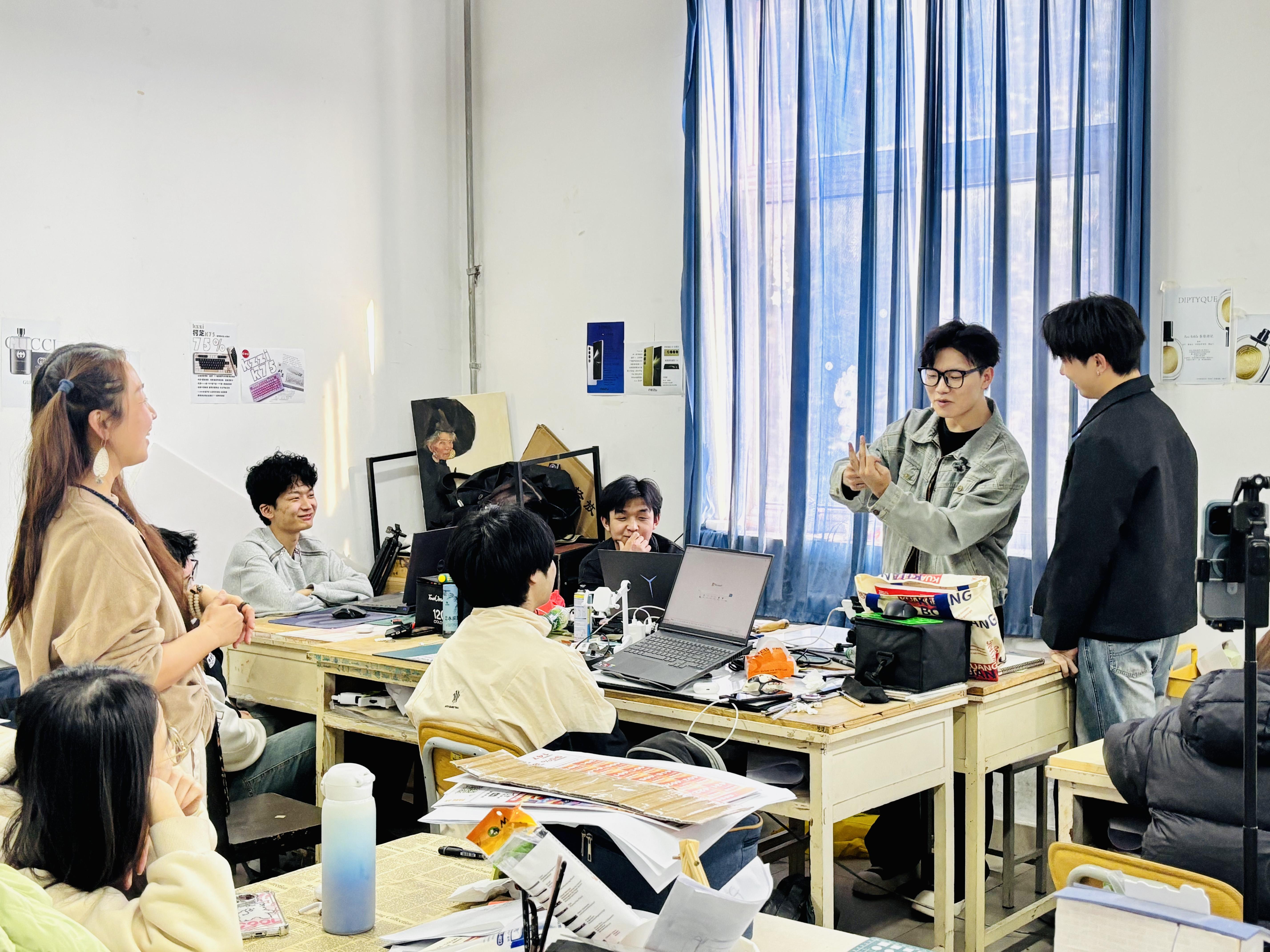朱宏轩介绍,在课程“书写故事”阶段,任课老师指导学生将抽象思维转化为具象文本,完成从混沌灵感到清晰叙事的跃迁。借助“公开讲故事”,学生们化身未来“说书人”,实现从静态文本到动态语言表达的蜕变。最终,凭借“绘制故事”,学生们将无形的构想、抽象的理念和动人的叙事,精准转译为可视、可感、可传播的设计方案。