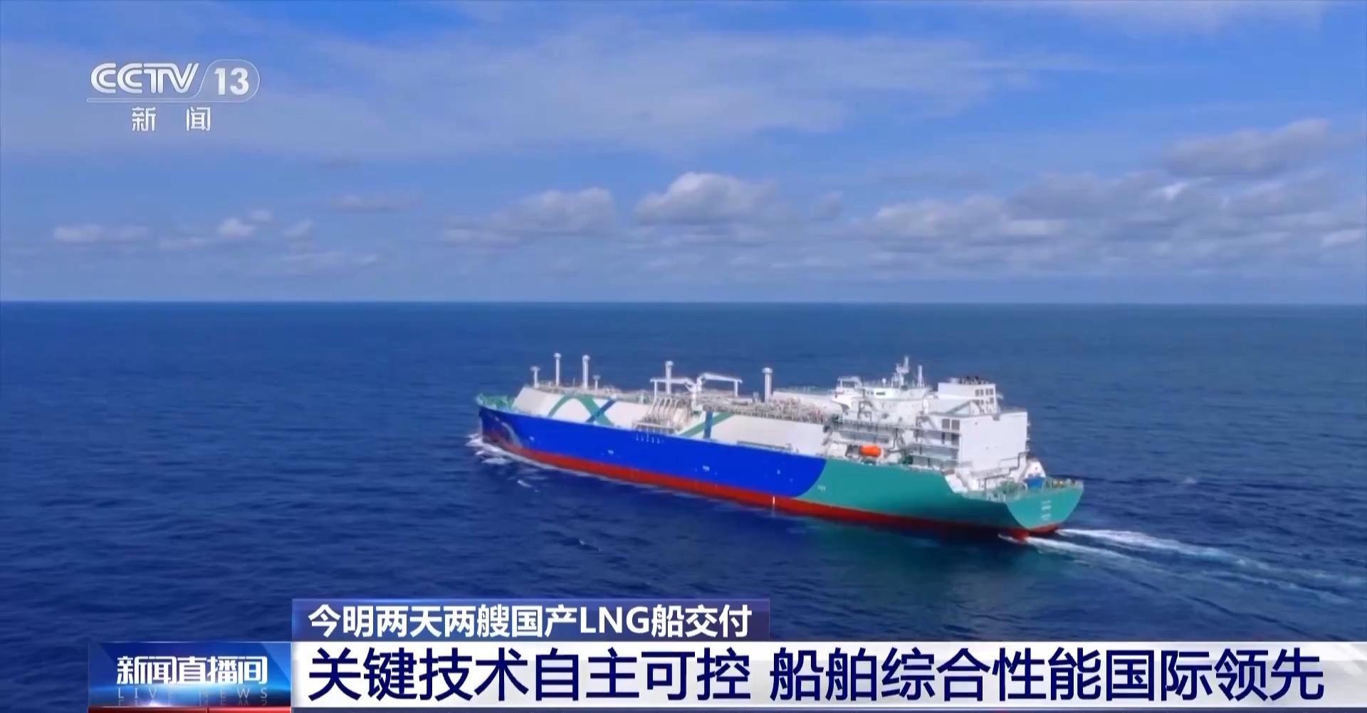 今天和明天交付的这两艘LNG大型运输船,是我国自主研制的第五代LNG大型运输船,集全球最新设计理念、最优技术装备和最强环保性能于一身,不仅实现了关键技术自主可控,提升了设备的国产化率,还大幅提高了船舶综合性能指标,总体技术达到了国际领先水平,一次满载运输的液化天然气可供上海市居民使用半个月。