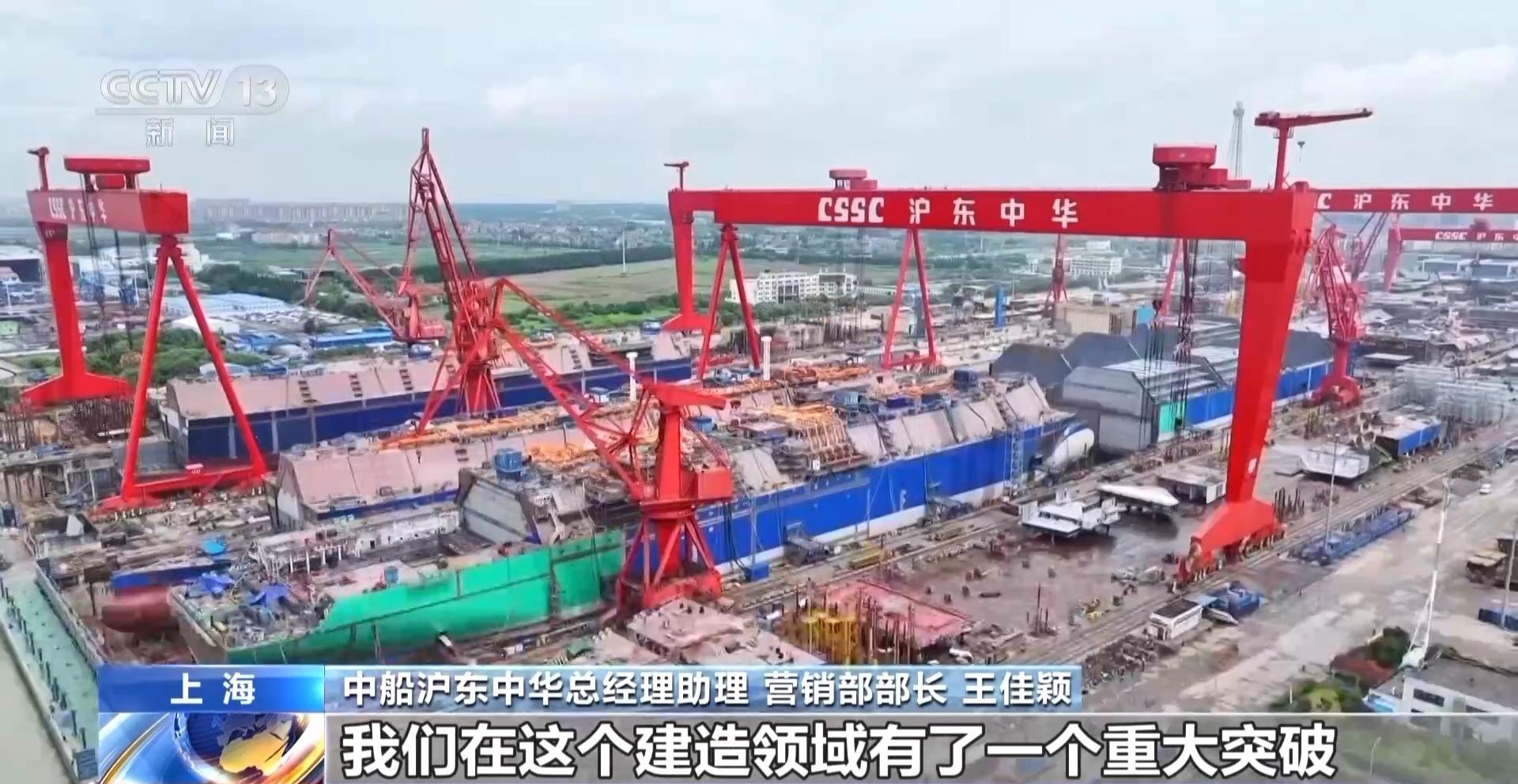 在中船沪东中华造船厂,记者看到,今年这家船企接到的绿色船舶订单占比已经超过80%,是近5年最高水平。船型覆盖集装箱船、LNG运输船等主力船型,燃料也从液化天然气拓展到了甲醇、液氢等,高端化、绿色化已经成为中国造船的新名片。