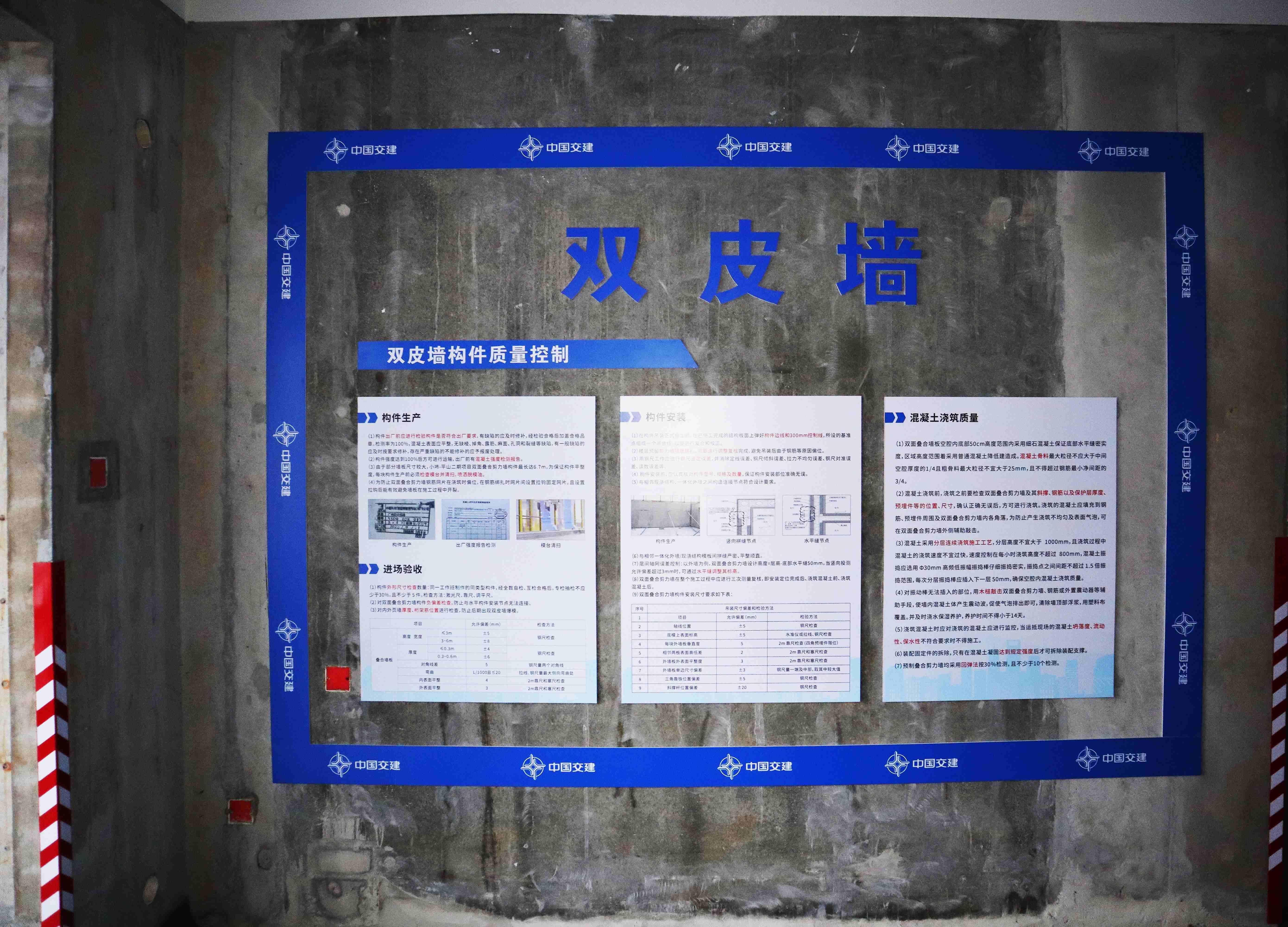 据了解,在项目高峰期,6栋塔楼同步进行标准层施工,数量庞大的传统预制构件严重阻碍进度。项目团队引入双面叠合剪力墙新工艺,俗称“双皮墙”,以“夹心饼干”式的墙体结构将单栋楼装配构件数量减少30%,并兼顾质量稳定与装配高效,形成《双面叠合剪力墙技术》总结,为大型住宅群装配式建造提供借鉴。