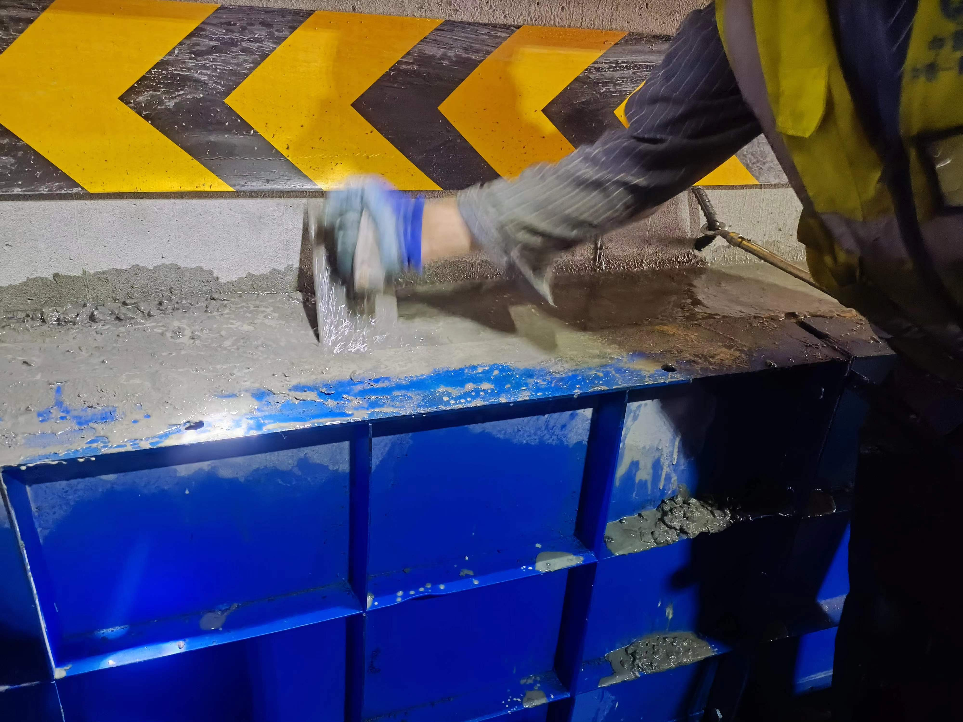 据悉,隧道电缆沟作为隧道内最外露的工程部分,其外观质量直接影响整体工程形象。在海拔2400米、气候恶劣、氧气稀薄的康定隧道,传统的电缆沟施工采用30米一节的固定钢模,配合人工灌注与振捣混凝土。然而,拆模后沟壁表面常出现气泡、水泡和蜂窝麻面,不仅影响美观,也降低了混凝土的密实度和强度。后期修补工作量大、成本高,尤其在高原环境中,这一问题更为突出。