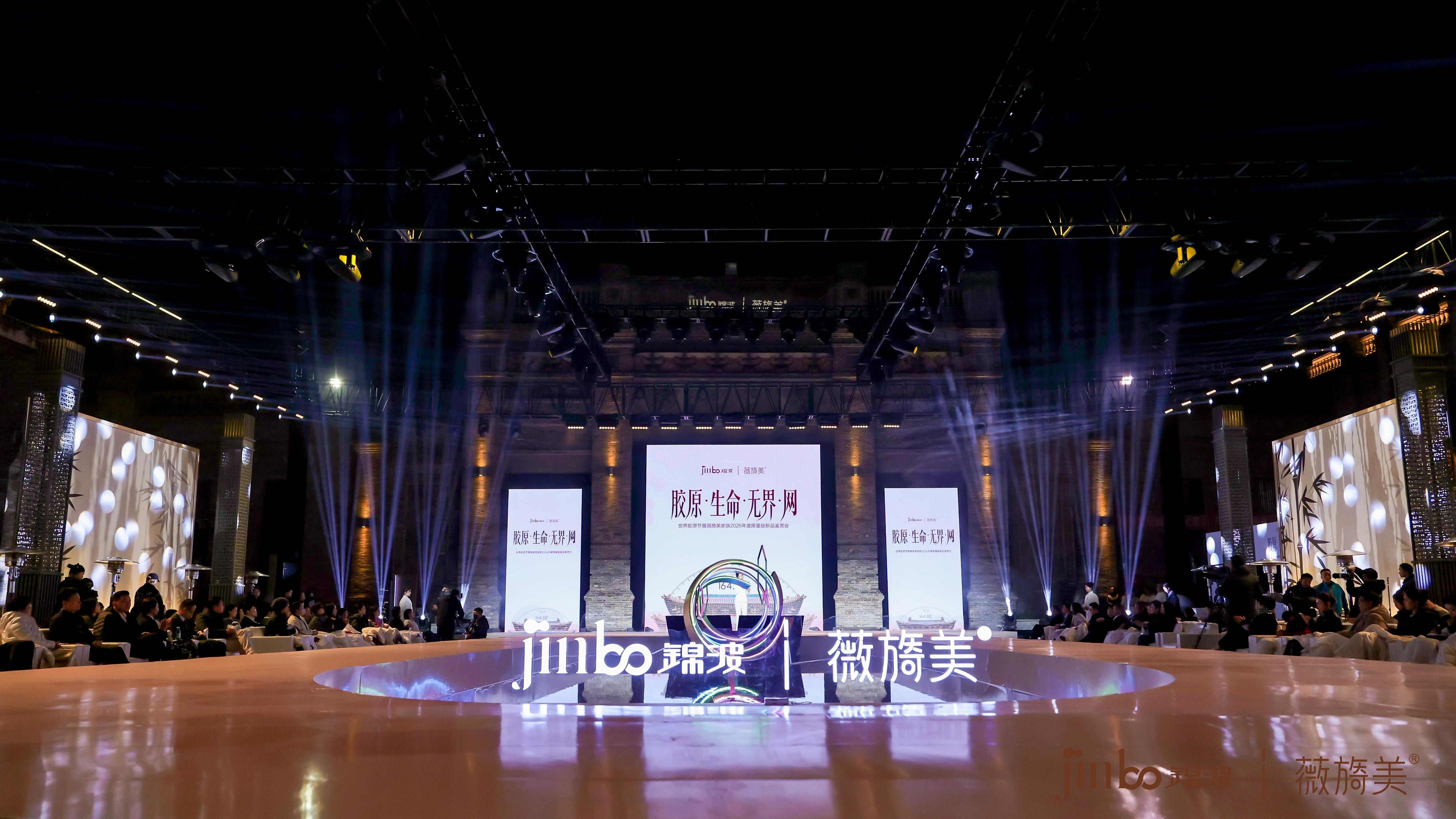 在新品介绍环节,与会嘉宾在红毯仪式、时尚秀等环节中,共同见证锦波生物全新产品WeaveCOL编织蜂巢凝胶的发布。杨霞说,这款新品独特之处在于,人类首次利用胶原蛋白自组装、自交联原理,整体设计无任何化学交联剂,摒弃了传统化学交联剂的毒性,利用合成生物学合成具有复杂“蜂巢”胶原蛋白网状凝胶。“其‘蜂巢’状三维网络结构不仅能精准模拟细胞外基质的天然环境、发挥物理支撑作用,更能为细胞提供适宜的附着与生长微环境,最终引导组织实现更优质的结构性修复与再生,发挥生命材料的功能。”杨霞表示。