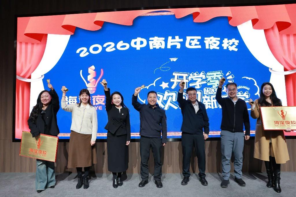 启动仪式上,领导嘉宾摇响“上课铃”,为京东科技大厦、中科科仪园区授牌“海淀夜校”。2026年中南片区青年夜校将依托片区“1+8+N”架构,践行“五共”理念,开展26类课程、400场活动,总课时超1000课时,覆盖文化、健康、技能、职场四大领域。