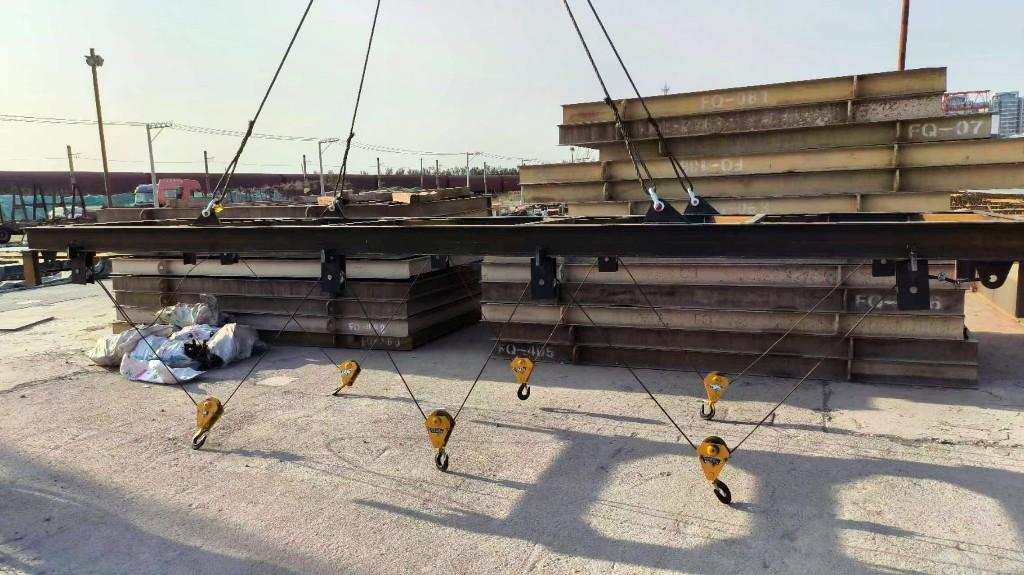 为实现精准安装,吊架集成高精度微动控制系统,借助导向滑轮与导轨的精准配合,可完成构件空中毫米级微调,将“粗放式”吊装升级为“精密化”安装,大幅降低人工调整的安全风险与操作难度,让数吨重构件精准就位。同时,模块化可调节吊点滑轮组设计支持灵活配置,满足不同构件吊点需求,实现“一机多用”,显著减少吊具更换的停工时间。