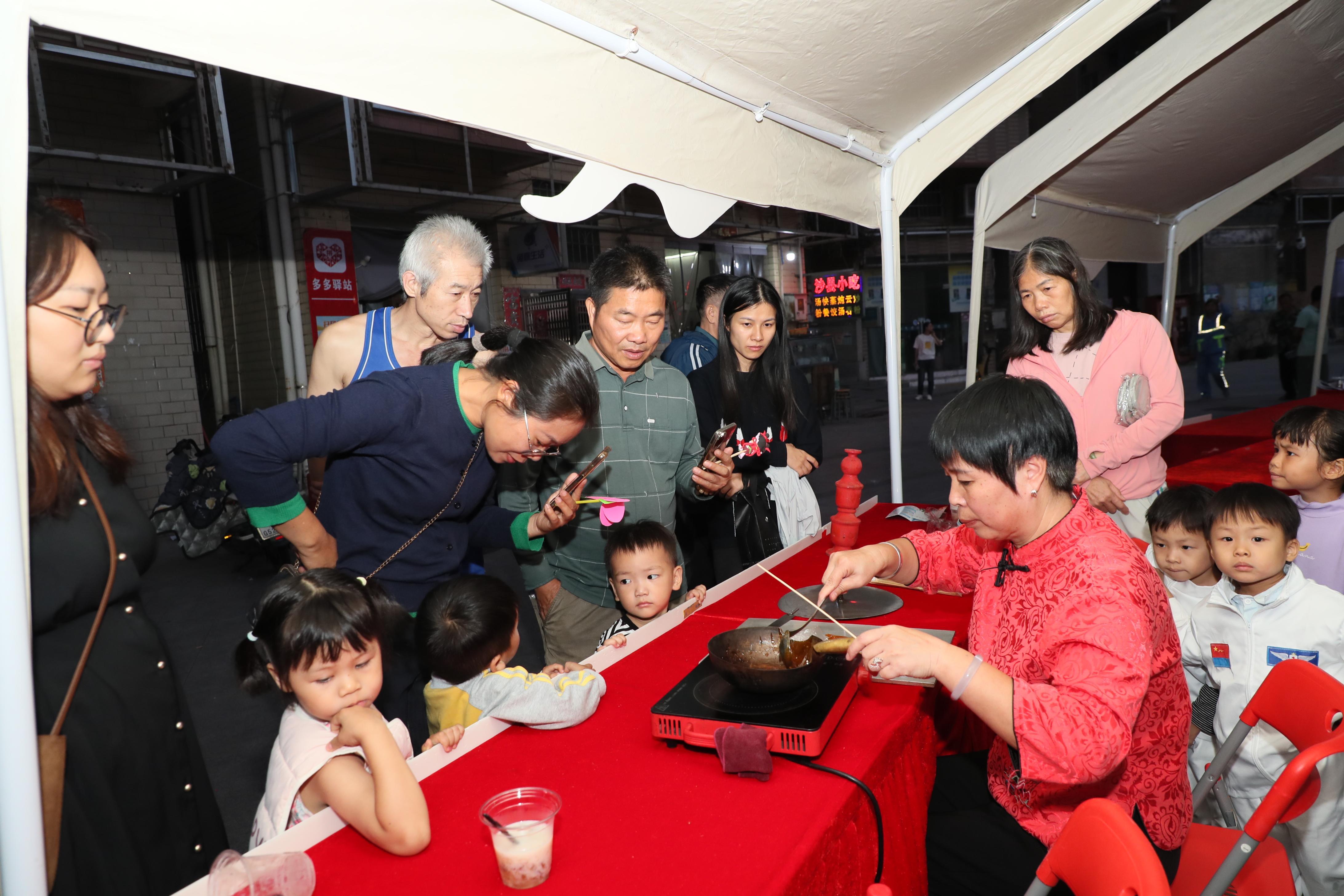 17时,华坑村牌坊文化广场张灯结彩,喜庆的音乐引得不少人围观驻足,由约100人组成的巡游队伍将第二届“红山媳妇节”的会场早早暖了起来。除了热闹非凡的巡游活动,现场还专门设置了互动摊位,民俗文化展示区展示红山街道优秀乞巧作品,互动体验区开展中国结、糖画、面塑等民俗体验活动,同时设立政策宣传、便民服务摊位。