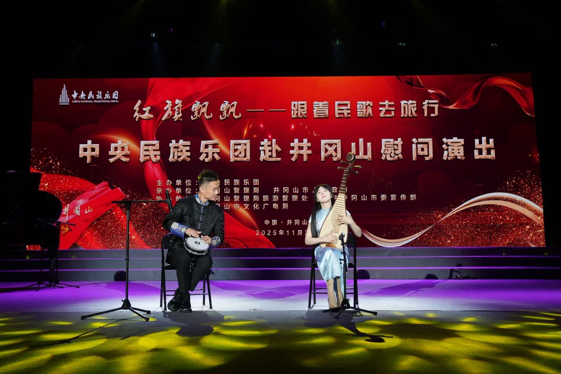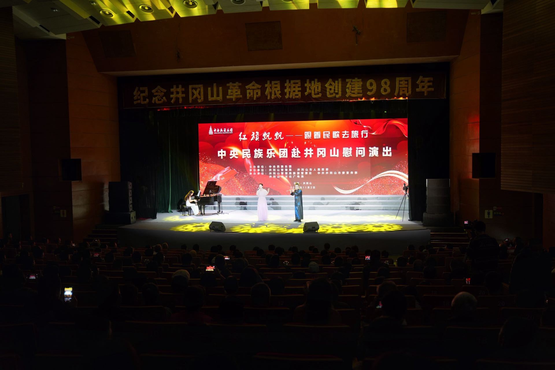 11月2日晚,井冈山革命博物馆一楼剧场内歌声飞扬,掌声雷动。“红旗飘飘——跟着民歌去旅行”中央民族乐团赴井冈山慰问演出在此盛大启幕,为井冈山献上了一场融合红色记忆与民族韵律的艺术盛宴。