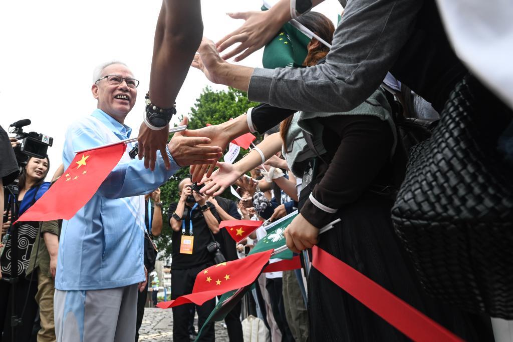 2日的香港天朗气清,传递路线沿途有不少自发聚集的市民和游客。他们有的挥舞着国旗与区旗,有的手执全运会主题的标语,“中国加油”“湾区加油”的欢呼此起彼伏。在澳门,大批澳门居民及游客手持国旗、区旗及印上十五运会徽的旗帜夹道欢迎,气氛热烈。