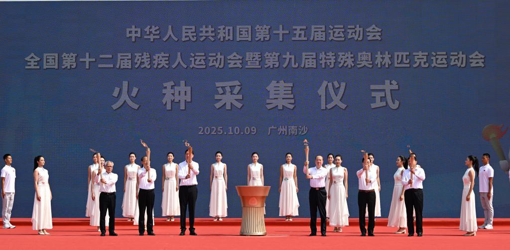 不到一个月前的“源火”采集仪式上,粤港澳三地代表接过采火棒,一起点燃十五运会和残特奥会火种盆,寓意粤港澳三地携手共进、同心筑梦。随后,火种被引入四盏火种灯,十五运会广东赛区执委会、残特奥会广东赛区执委会、香港赛区筹委会和澳门赛区组委会代表分别受领火种。