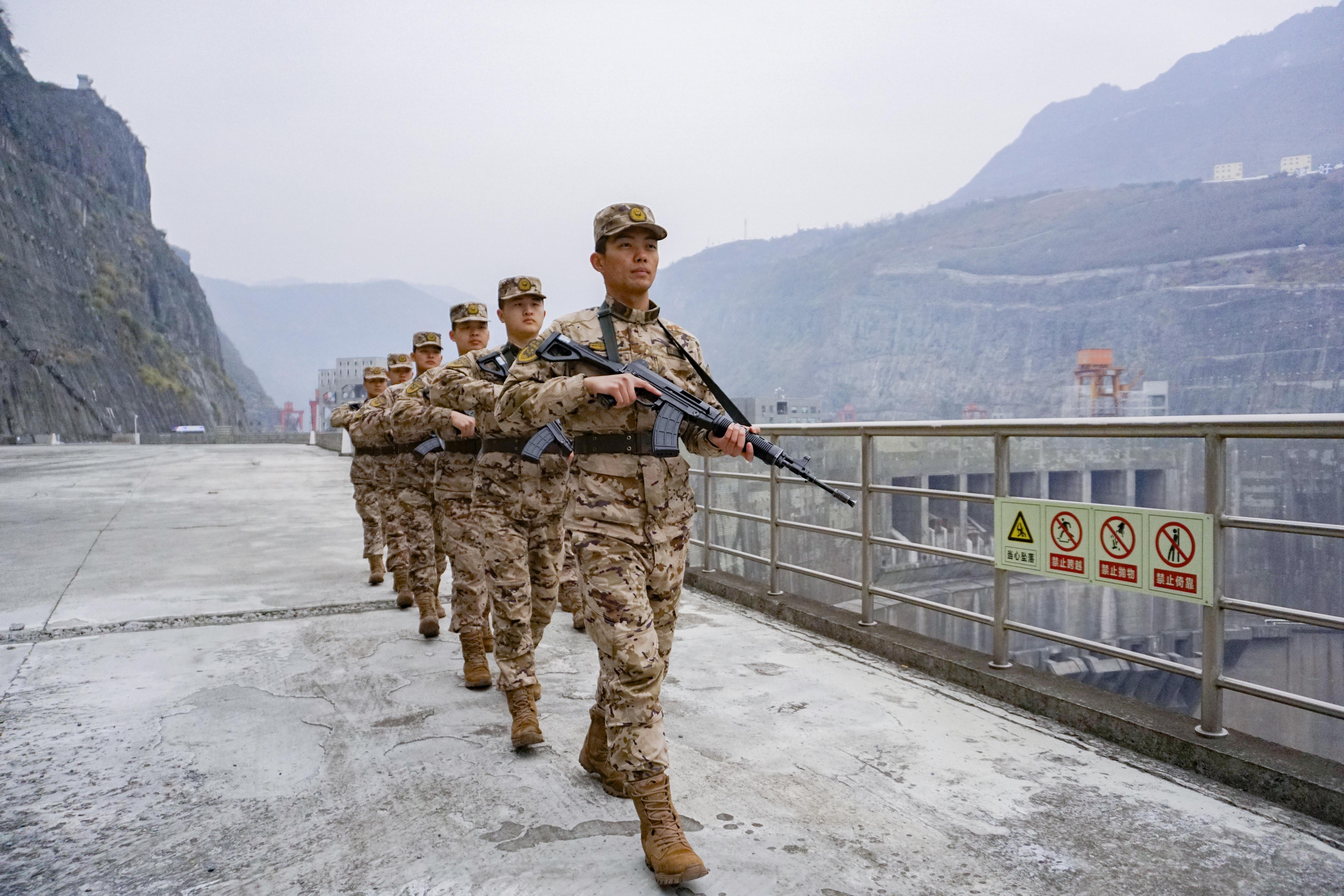 川滇交界,当曲、沱沱河等支流从唐古拉山脉呼啸而下,一路奔流至金沙江峡谷。2015年10月,伴随着国家“西电东送”骨干电源工程——溪洛渡水电站主体工程完工,武警云南总队抽组百余名官兵组建武警昭通支队两个守卫中队。
