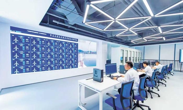 任屋外狂风骤雨,调度室内调度员淡定如常,面前多块屏幕联动多个系统,轻触屏幕即可直连工作范围任意中心变电站;无人机从机巢一键自动起飞执行巡视任务,线路及设备信息后台屏幕实时共享……