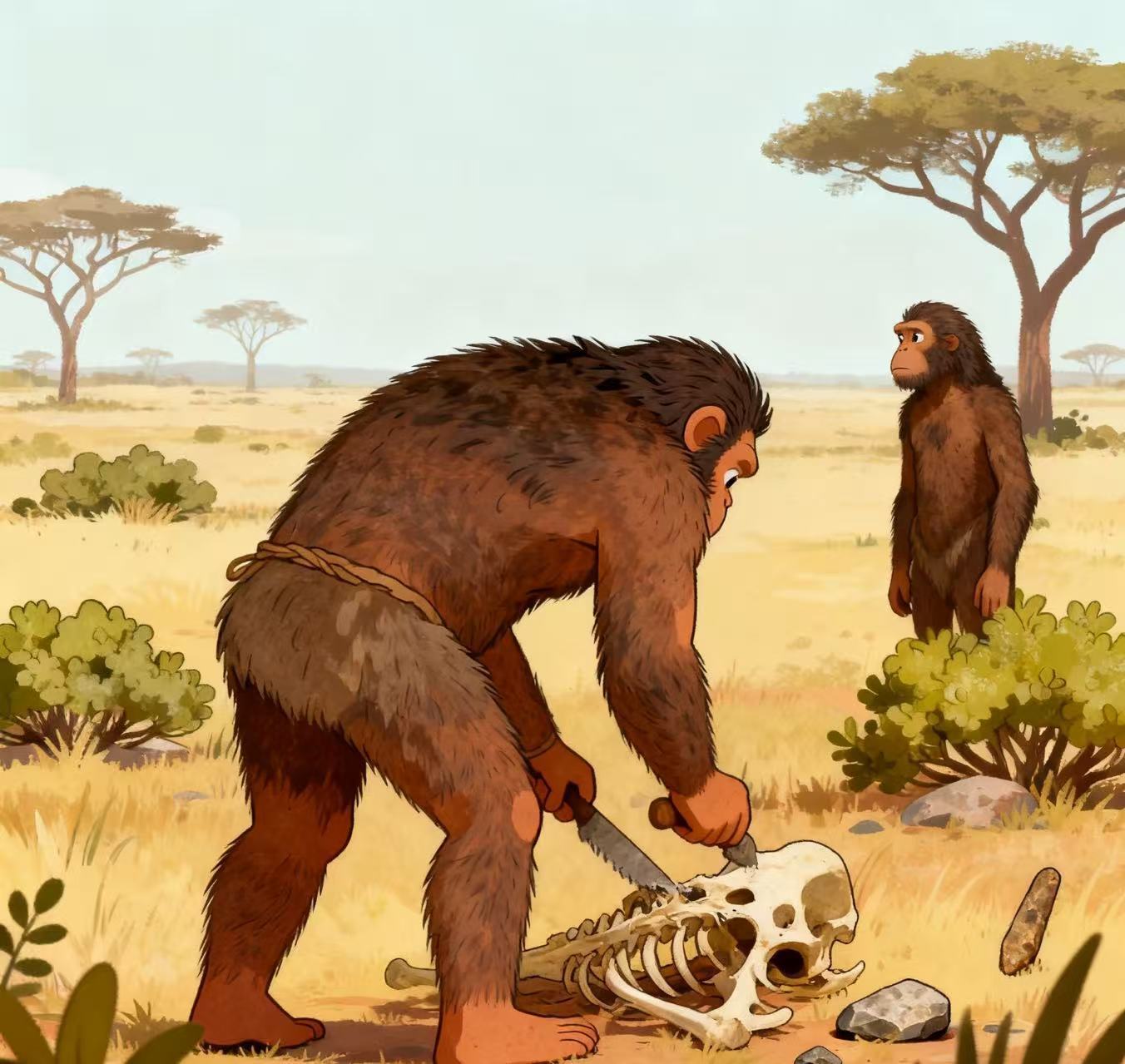 这意味着,到275万年前,人们已是制石高手了:遗址中动物骨头上的清晰切割痕迹,直接证明了这些石器被用来屠宰猎物,帮助人类获取高能量的肉类,从而在资源匮乏的环境中打开新的生存通道。