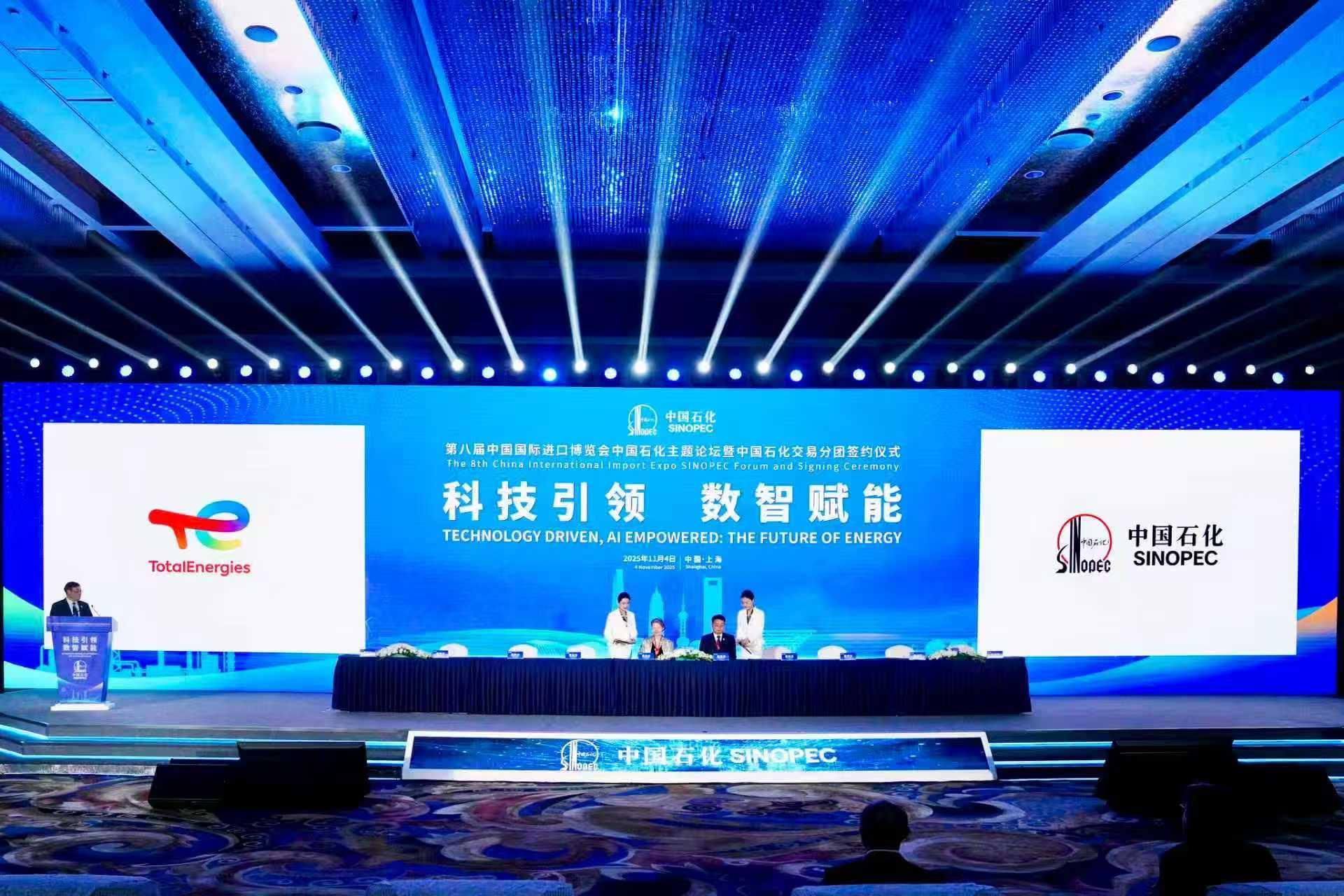 11月4日,第八届中国国际进口博览会中国石化主题论坛暨中国石化交易分团签约仪式在沪举办。论坛以“科技引领 数智赋能”为主题,聚焦数智赋能、推动技术创新和新材料研发、增强供应链韧性,探讨深化国际能源合作。签约仪式上,中国石化与来自17个国家、地区的34家合作伙伴签约,涉及原油、化工品、设备、材料、消费品等10大类24种产品,采购签约金额超409亿美元。自2018年首届进博会以来,八届进博会上中国石化累计签约超3250亿美元。