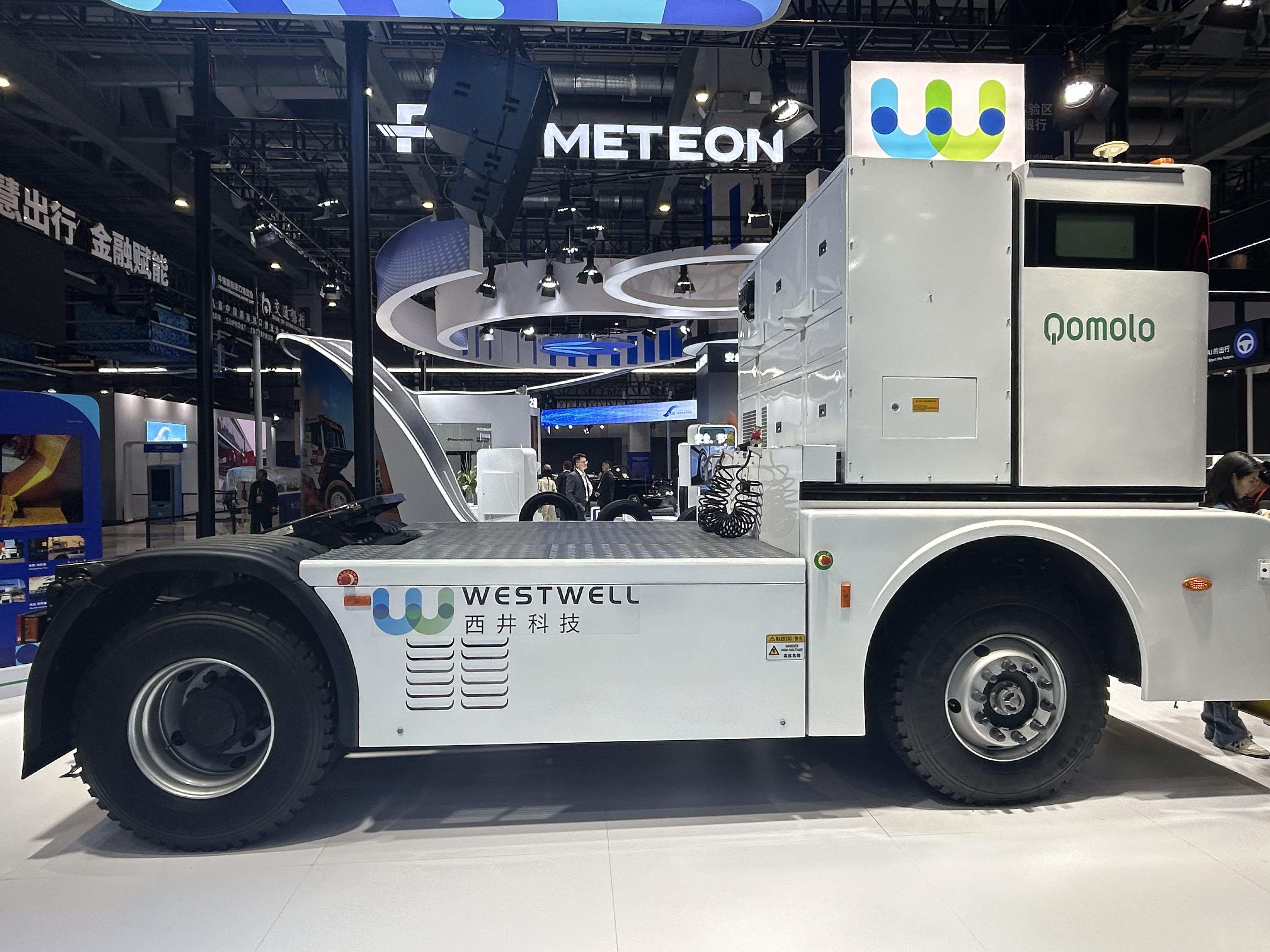 在本届进博会上海西井科技股份有限公司展台,因参演《流浪地球2》圈粉无数的明星产品——全时无人驾驶新能源重卡 Q-Truck炫酷亮相。这款采用无驾驶室颠覆性设计的产品,目前已成功出口至阿联酋、英国、埃及、墨西哥等国。公司公共事务高级经理陈霖告诉科技日报记者,这款产品已在英国菲力斯杜港等港口物流场景实现24小时不间断作业,以实际运营成果刷新无人驾驶规模化应用成效。