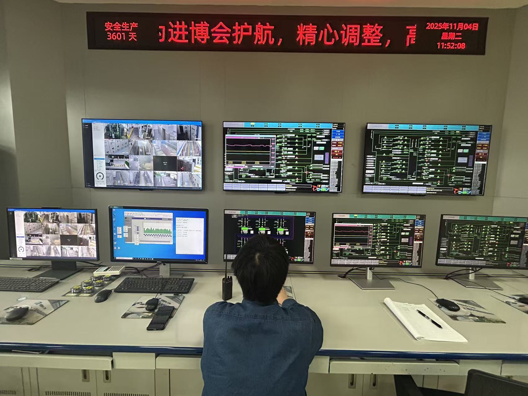 位于进博会主会场仅200米的华电上海国家会展中心(上海)能源站,集合了分布式电热冷耦合、余热余压利用等先进技术,连续八届为会展中心提供冷、热等多种能源,综合能源利用效率达80%。自10月30日15时以来,能源站配合国家会展中心运用智能化手段,先后多次对核心区六大区域进行供能管网测试、控温演练、降温循环。华电福新能源有限公司运行维护部主任左兰波介绍,“进博会期间,我们已全面做好全时段、全天候的供能保障准备。”
