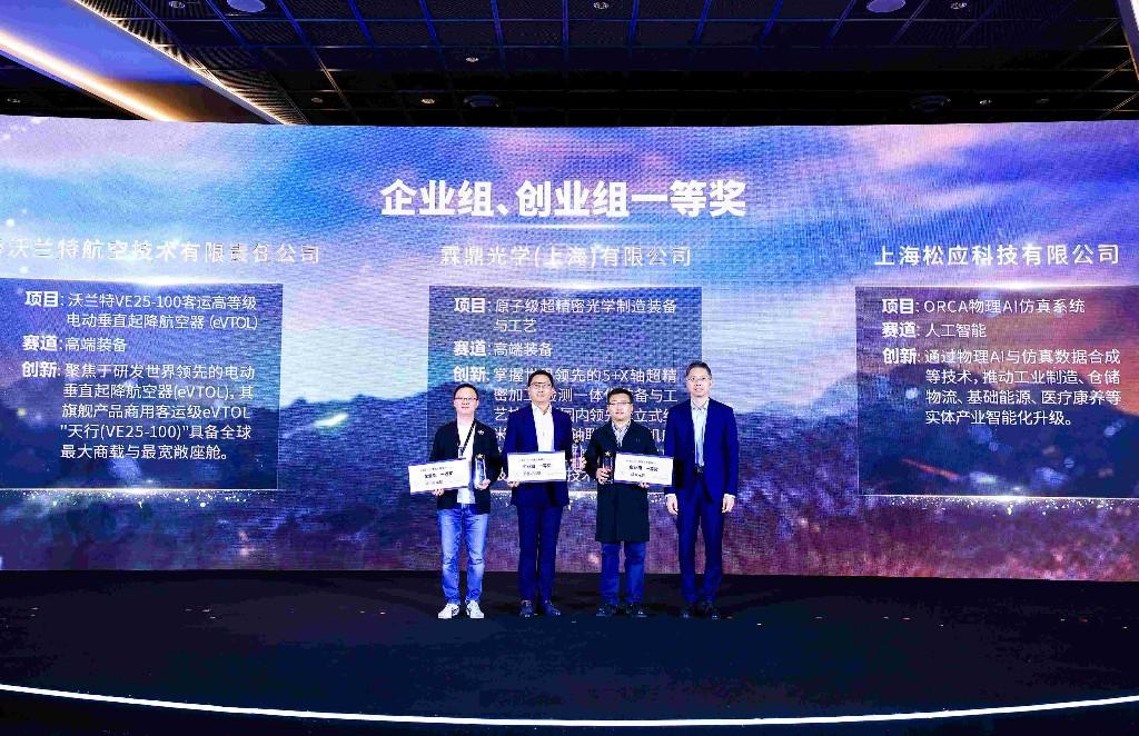获得企业组一等奖的霖鼎光学(上海)有限公司依托上海交通大学,聚焦原子级精度超精密工业母机与原子级检测仪器自研能力,打造世界领先的超精密光学制造工业基础,为生物医疗、航空航天等领域高端装备批量制造提供高精度光学元件、系统及产品解决方案。另一家获得一等奖的上海沃兰特航空技术有限责任公司聚焦于研发世界领先的电动垂直起降航空器。