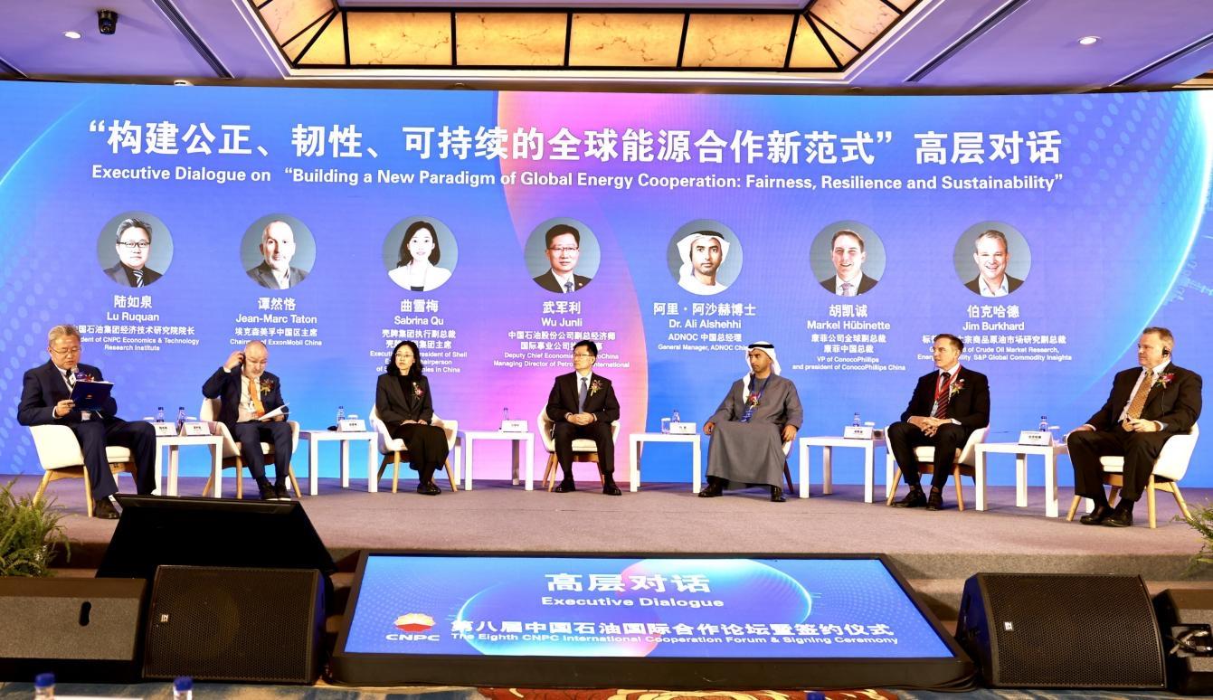 在高层对话环节,中国石油与来自壳牌集团、埃克森美孚、康菲、阿布扎比国家石油公司、标普全球等全球顶尖能源企业的领军者与资深业界专家,围绕“能源公正转型”“能源供应链韧性”“能源发展新动能”三大议题,通过开放的数据、丰富的案例和思想的碰撞,凝聚智慧与共识,谋求为全球能源合作的新范式找到最大公约数。