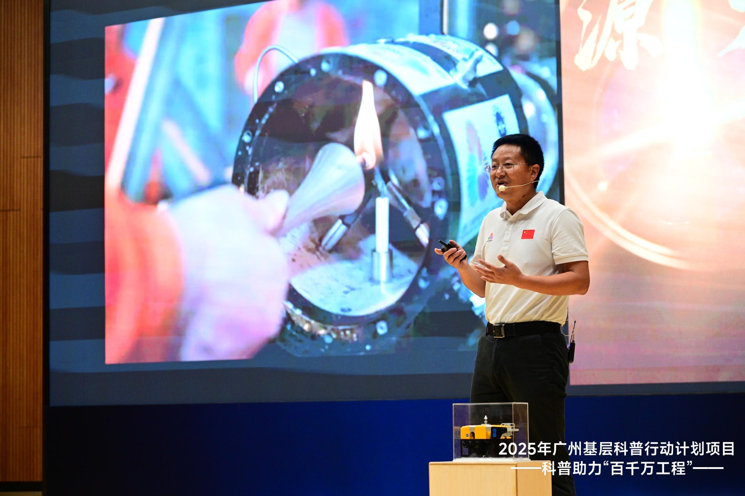 11月3日,2025年广州基层科普行动计划项目——“科普助力‘百千万工程’”暨新质生产力“水下机器人”专场活动在广州市南沙区湾区实验学校举行。广州海洋地质调查局海洋技术方法研究所副所长、教授级高级工程师陈宗恒现场揭秘我国研发“海马”号无人深潜水器的过程,以及如何深海取火。
