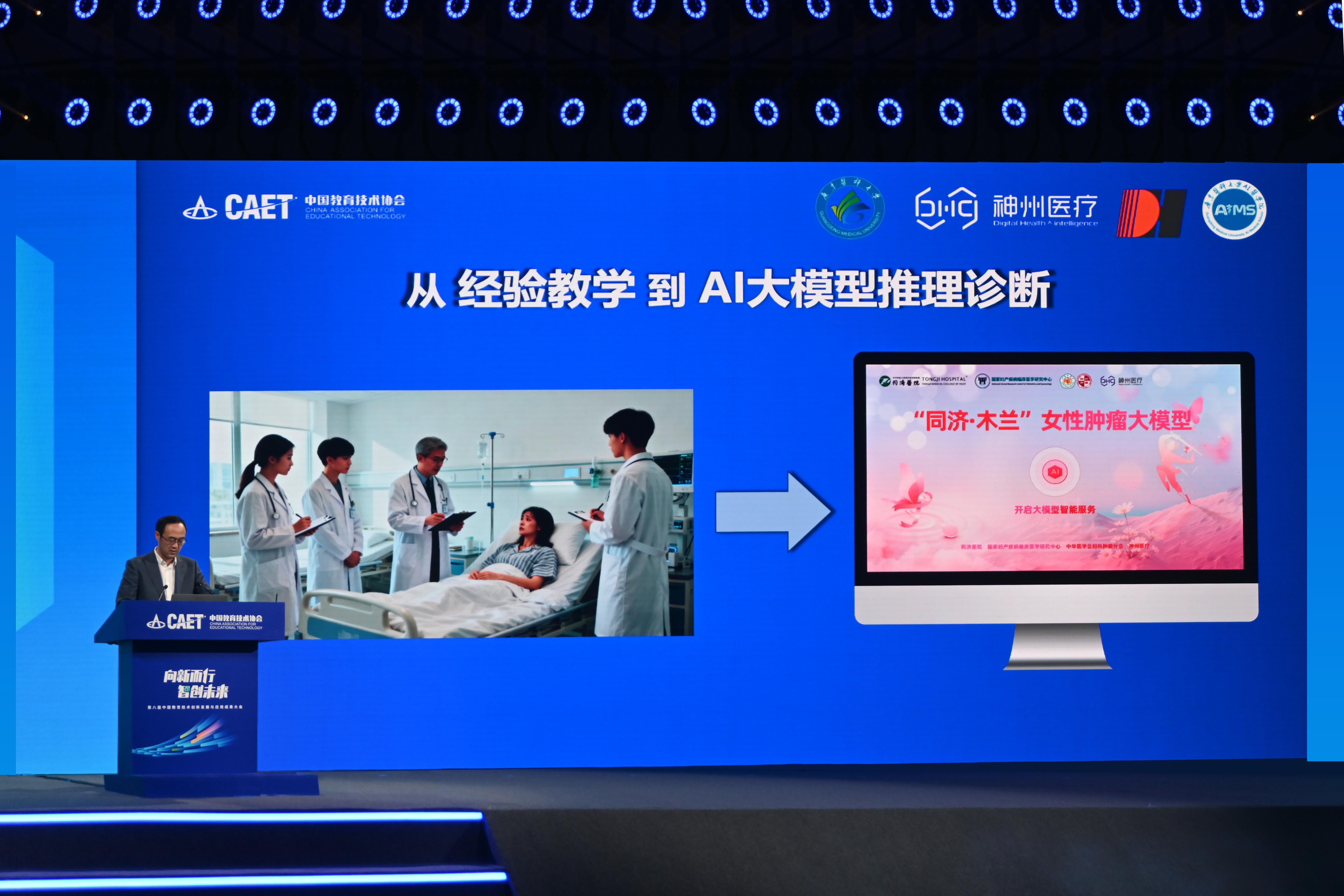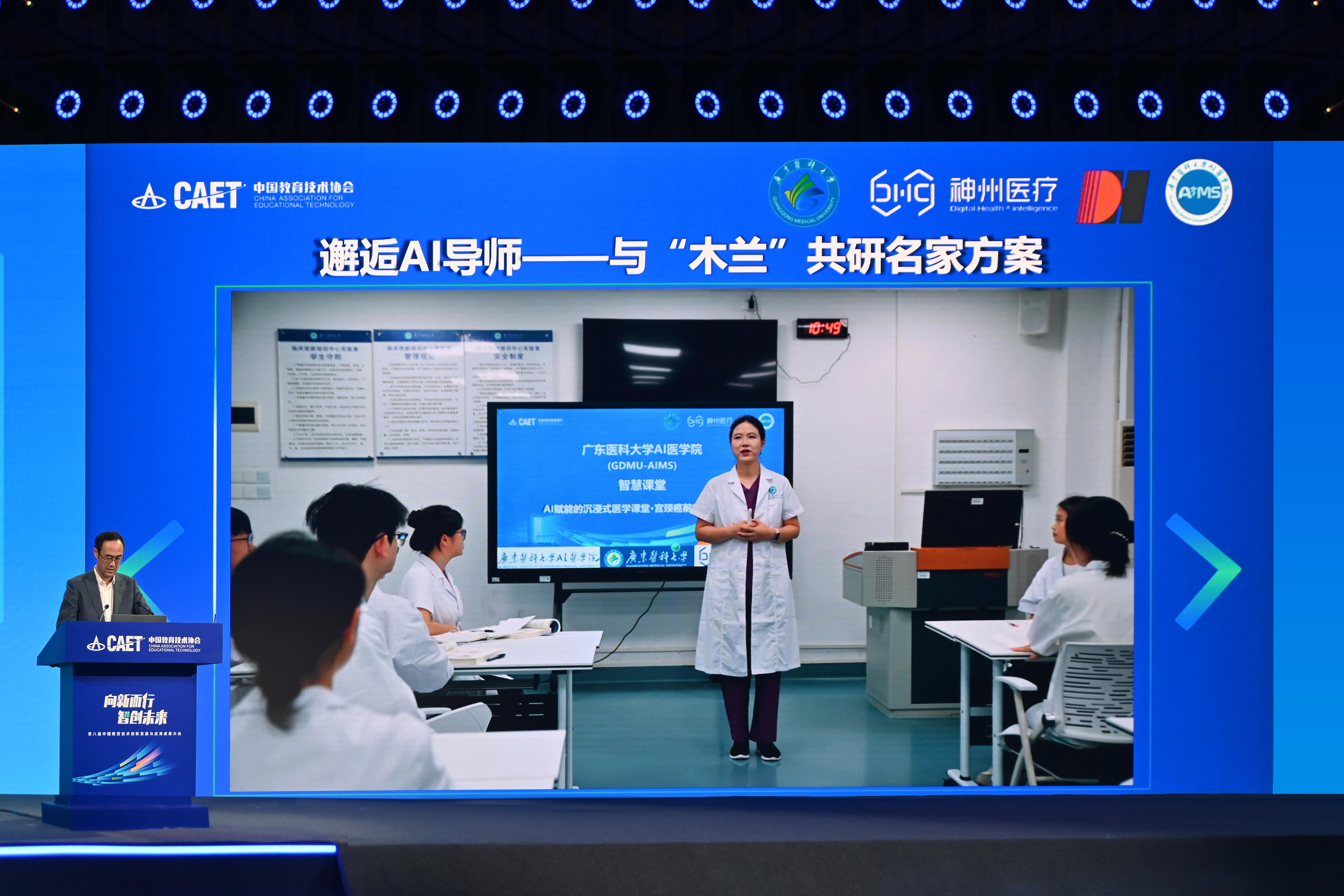 11月4日—5日,在第八届中国教育技术创新发展与应用成果大会上,广东医科大学联合神州医疗、华为共同打造的全国首个AI医学院(GDMU-AIMS)亮相,呈现了AI赋能下的“师-机-生”协同共创学习的新模式。