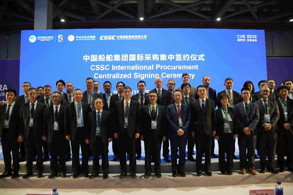 签约仪式上,中国船舶集团旗下11家成员单位与来自13个国家和地区的24家国际供应链伙伴进行了35个项目的集中签约,产品涵盖船舶主机、发电机、通讯导航、液货系统、监测报警等各类重要配套设备,合同总金额达6.1亿美元,比第七届进博会增长9%,再创历史新高。