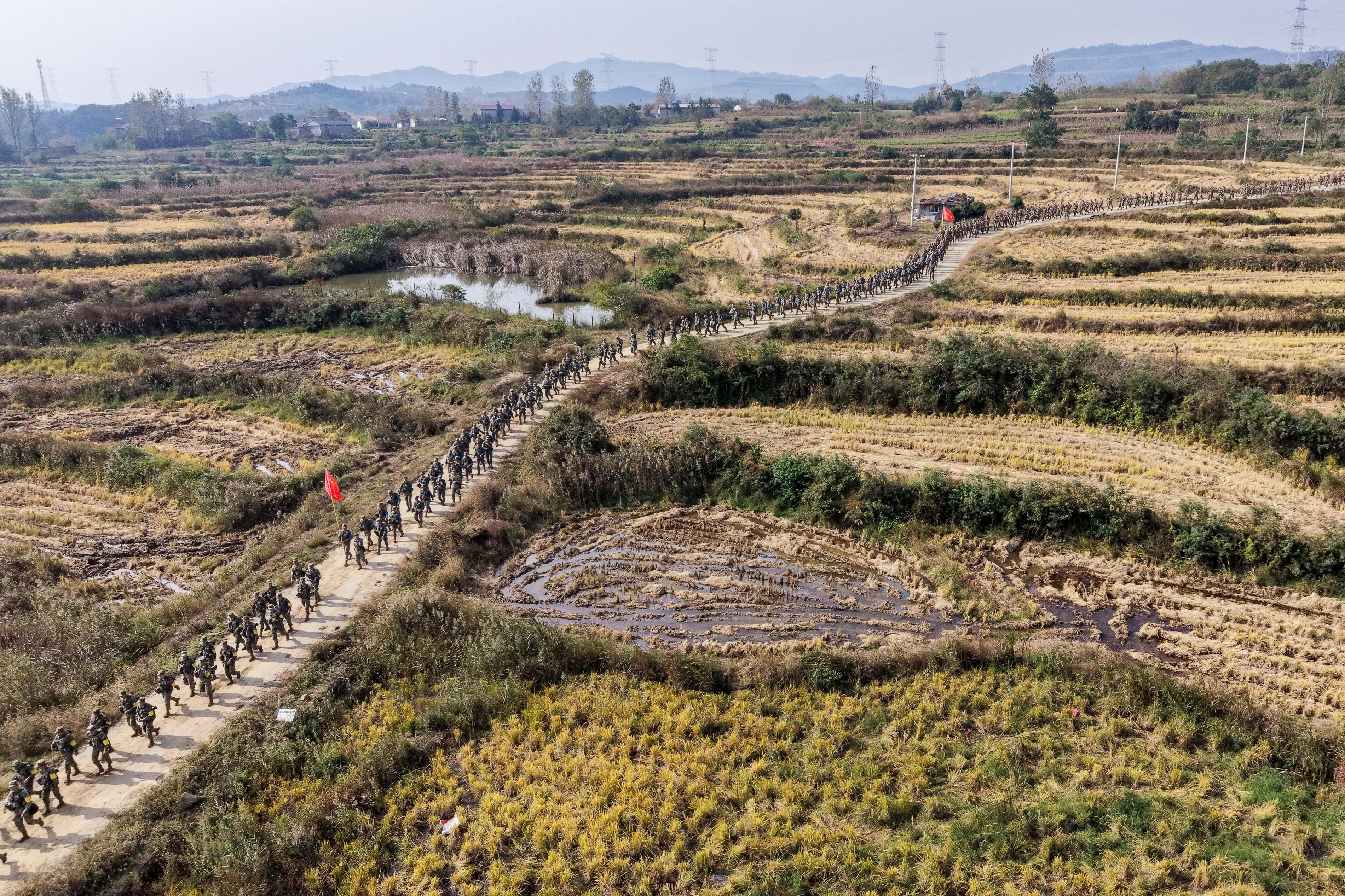 “出发!”随后,一场带有战术背景的50公里武装徒步强行军拉开帷幕。
