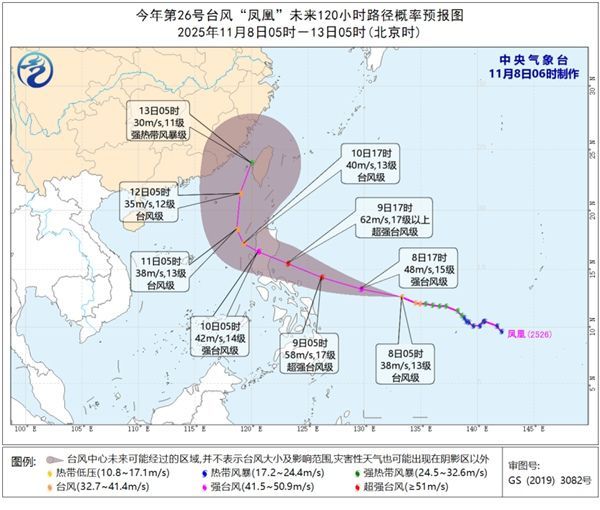预计,“凤凰”将以每小时30-35公里的速度向西偏北方向快速移动,强度快速增强,最强可达超强台风级(55-65米/秒,16级-17级以上),逐渐向菲律宾吕宋岛东部沿海靠近,穿过吕宋岛后强度减弱,将于10日中午到夜间移入南海,之后逐渐转向偏北方向移动。