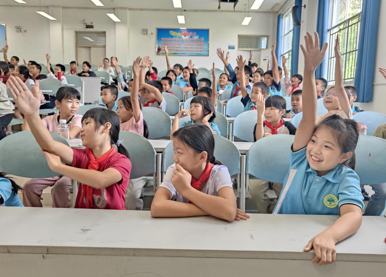 活动中,专家们打破传统科普单向传播模式,采用互动问答、现场实验、案例分析等多元化形式,让科学知识变得生动易懂。武向平院士以“1米”为切入点,为蒙自市第二中学师生解锁宇宙尺度的奥秘;中国科学院植物研究所王英伟博士用儿童化语言,辅以图文视频,为河口县城区小学生讲解花朵如何通过颜色与香气吸引昆虫授粉;空军指挥学院教授陈洪以飞机为主题,在屏边县半坡小学讲解我国空天军事实力,厚植边疆学子的家国情怀。师生们踊跃参与互动,在轻松氛围中拓宽了科学视野,激发探索热情。