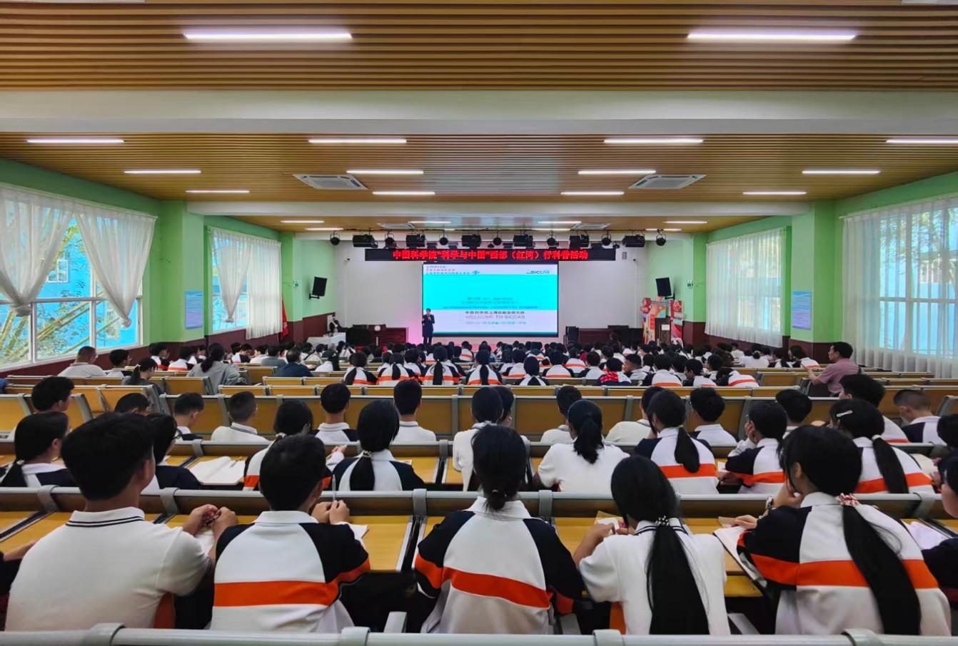 活动由中国科学院上海分院主办,红河州人民政府承办,红河州科学技术局、红河州教育体育局协办。来自北京、上海、南京的10位院士专家,学科领域涉及天文学、航天航空、动植物学、古生物学、环境化学材料等。专家们深入蒙自、河口、屏边等县市的22所中小学,开展了43场科普报告,主题包括“认识我们的宇宙”“AI+蛋白质:开启生命科学的智慧之门”“凝结时光——恐龙时代的琥珀故事”等17个方向,全方位覆盖不同学段学生的科学认知需求。