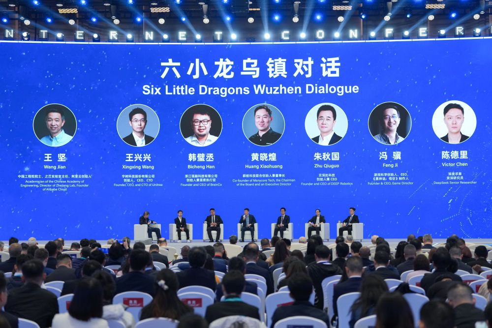 7日下午,在峰会主论坛现场,“六小龙乌镇对话”邀请来自宇树科技、强脑科技、群核科技、云深处科技、游戏科学、深度求索6家企业负责人和代表,畅谈人工智能的现在和未来。