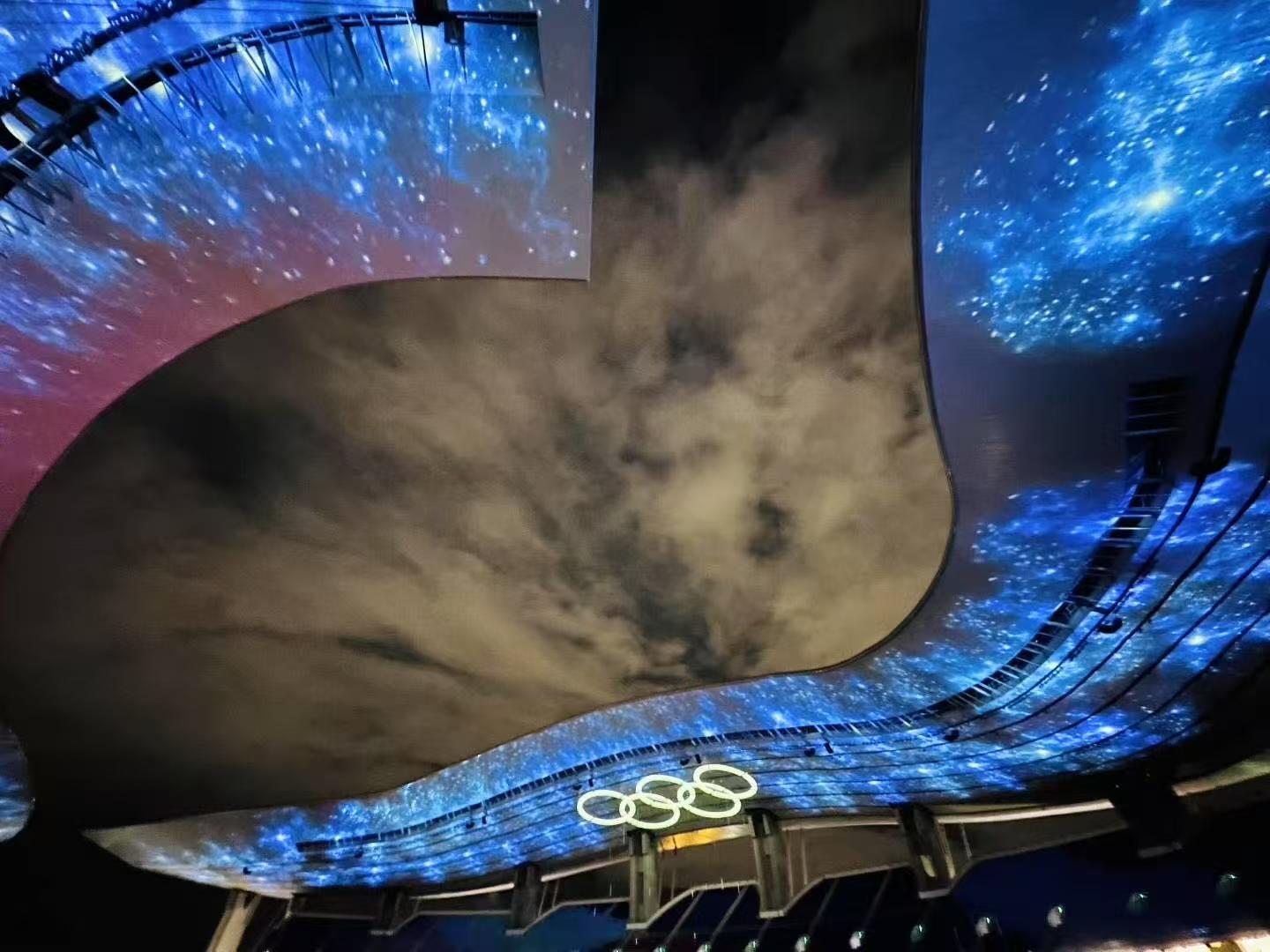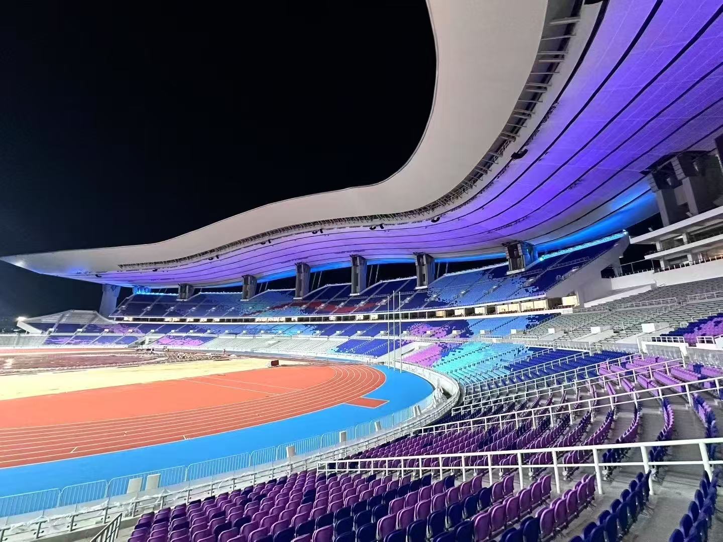 此前,体育场没吊顶,为了体现“飘逸”感,由中国工程院院士何镜堂担纲的设计团队大胆创新,在保留屋盖造型底部的基础上,创造性地增加PTFE吊膜设计,将大量裸露的钢结构进行遮蔽,从而优化视觉效果。同时,设计团队通过现代泛光投影技术,使得屋盖呈现多样化动态光影,打造一个崭新的“飘带”。