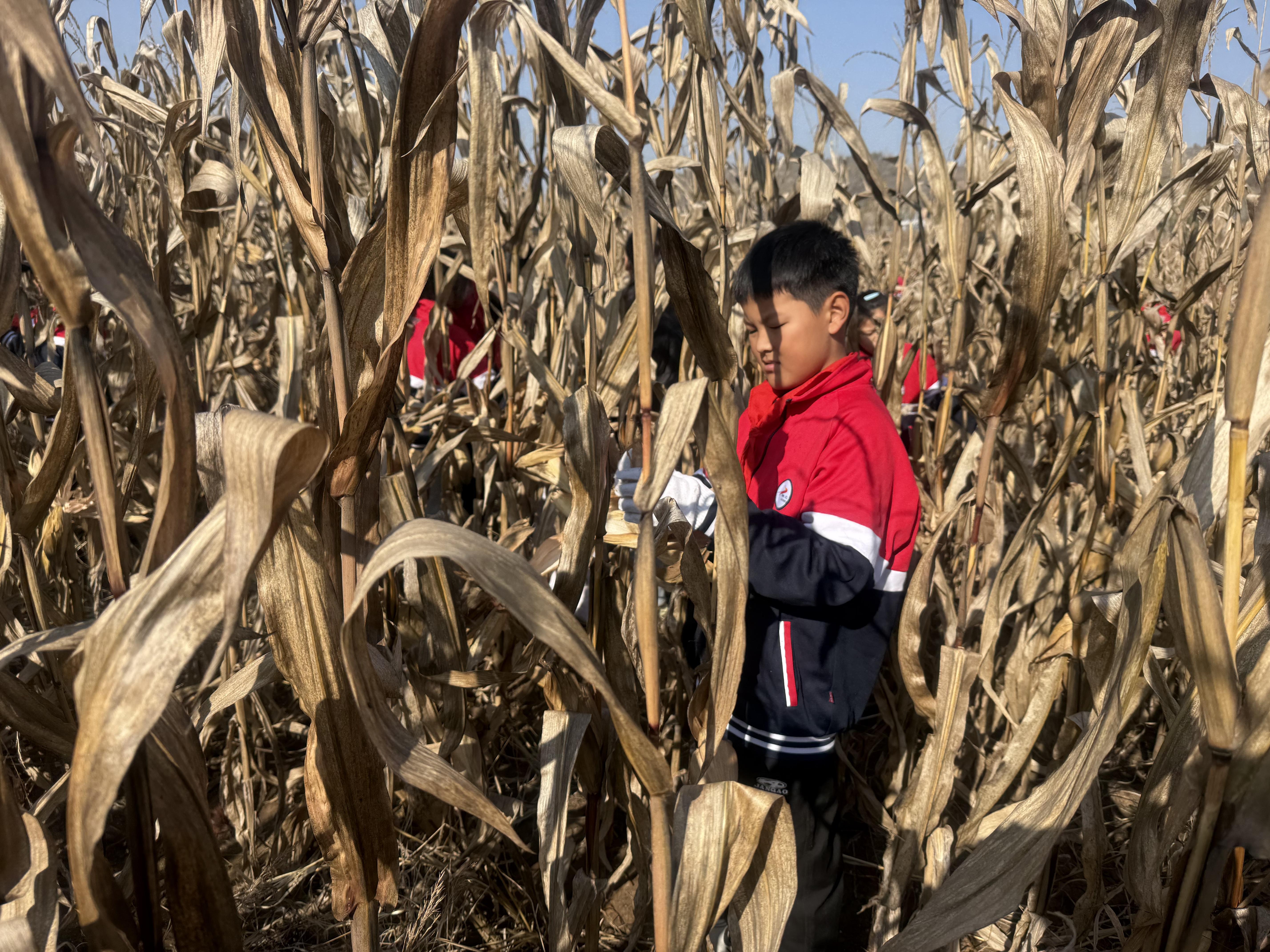 活动中,学生们不仅亲手掰玉米,体验农事辛劳,更深度接触了智慧农业科技。他们走进植物工厂、田间气象站探究环境对作物的影响,并亲手拆卸、组装及操控无人机,完成了模拟植保飞行作业。