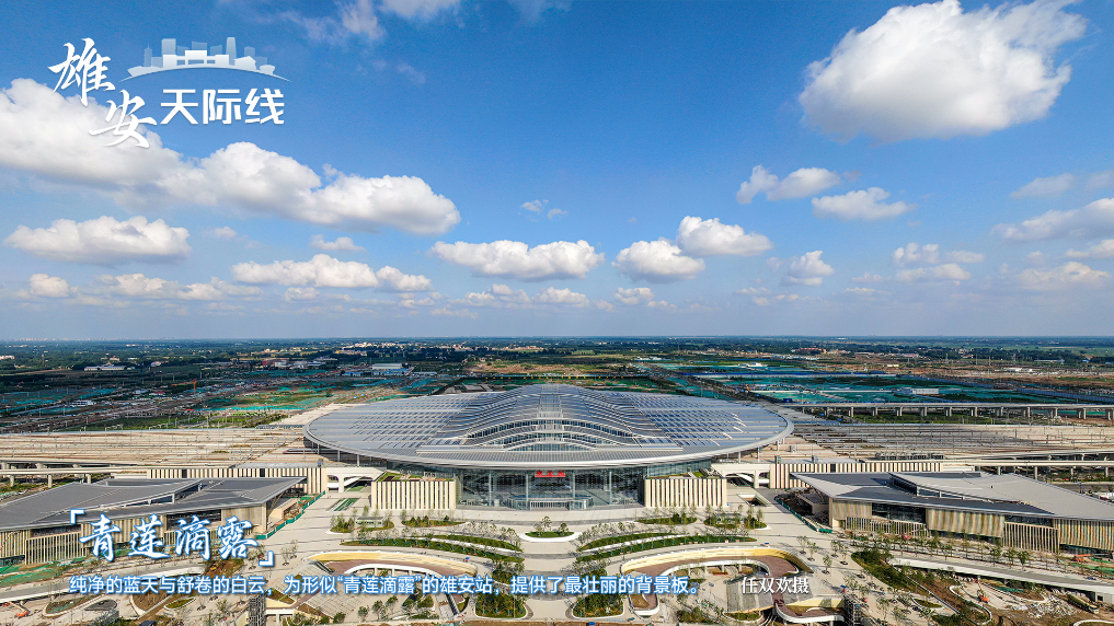 俯瞰形如“青莲滴露”的雄安站