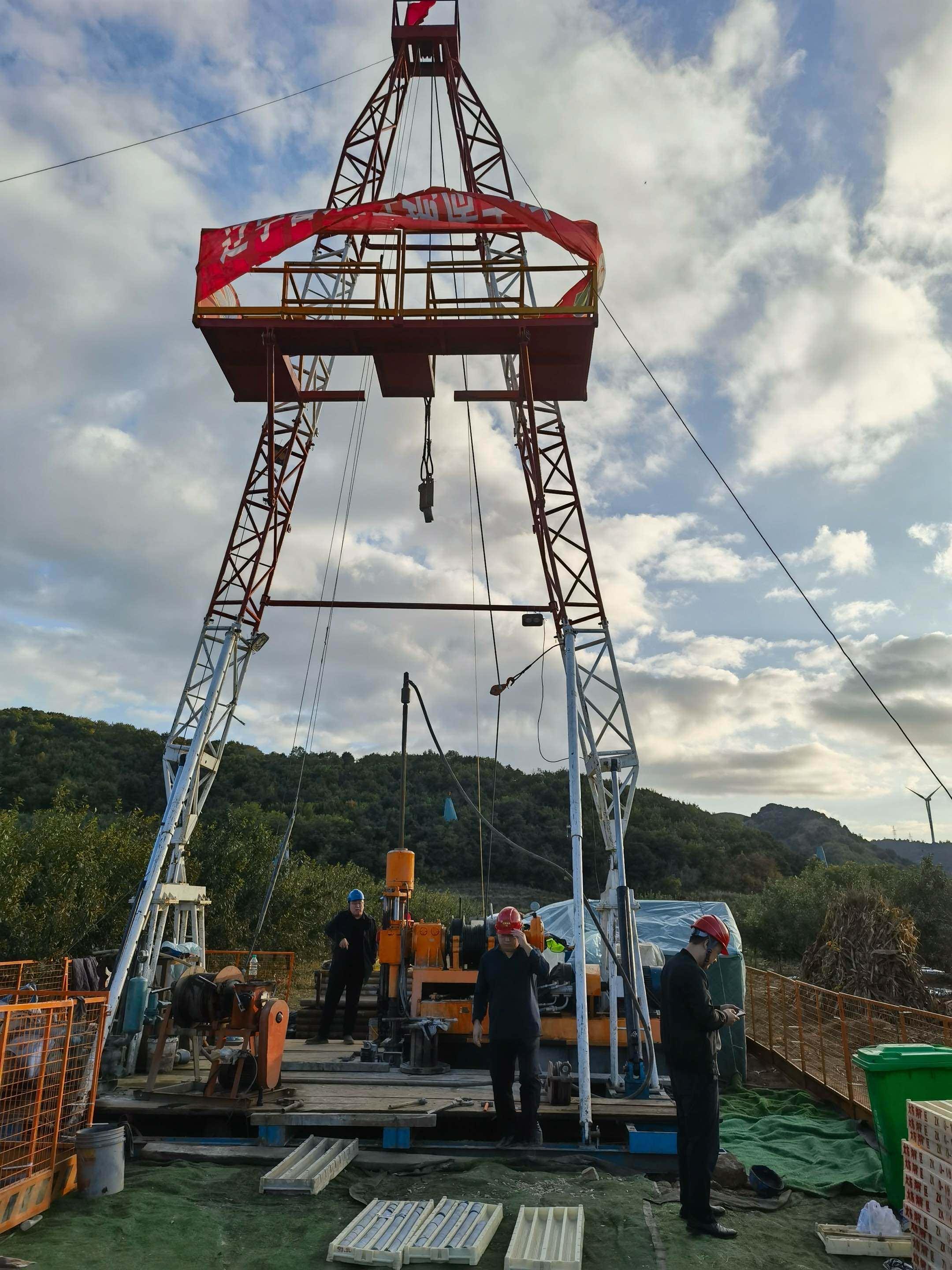 2023年12月,辽宁省地质勘探矿业集团有限责任公司(以下简称“地矿集团”)取得“辽宁省盖州市大东沟金矿普查探矿权”(以下简称“大东沟金矿”),2025年9月15日,勘探报告经辽宁省自然资源厅评审备案。该金矿床找矿线索于1989年首次发现,在2009年和2014年的普查找矿工作中取得阶段性进展。2024年,新一轮勘查中创新实施“普详勘一体化”勘查模式,统筹组织18家生产与科研单位“大会战”。施工高峰期间,现场45台钻机同时运行,近千名工作人员协同作业,构建了多层级协同与全流程闭环管理体系,形成“战略决策—专业执行—技术支撑”的高效运行机制。首次在千枚岩地区成功安装变频装置,实现基于岩性硬度钻速与压力的动态调控,有效控制钻探偏斜,此项技术行业领先。全面应用三维建模技术展示矿体赋存状态,采用地质统计学方法估算资源量,经传统几何法验证,估算结果真实可靠。历经15个月的勘查工作,地矿集团累计投入资金近2亿元,完成219个钻孔,机械岩心钻探进尺达13.67万米,于2025年6月30日全面完成野外工作,8月19日提交《辽宁省盖州市大东沟矿区34-39勘查线金矿勘探报告》,开创国内“短周期、高质量”的金矿勘查先河。